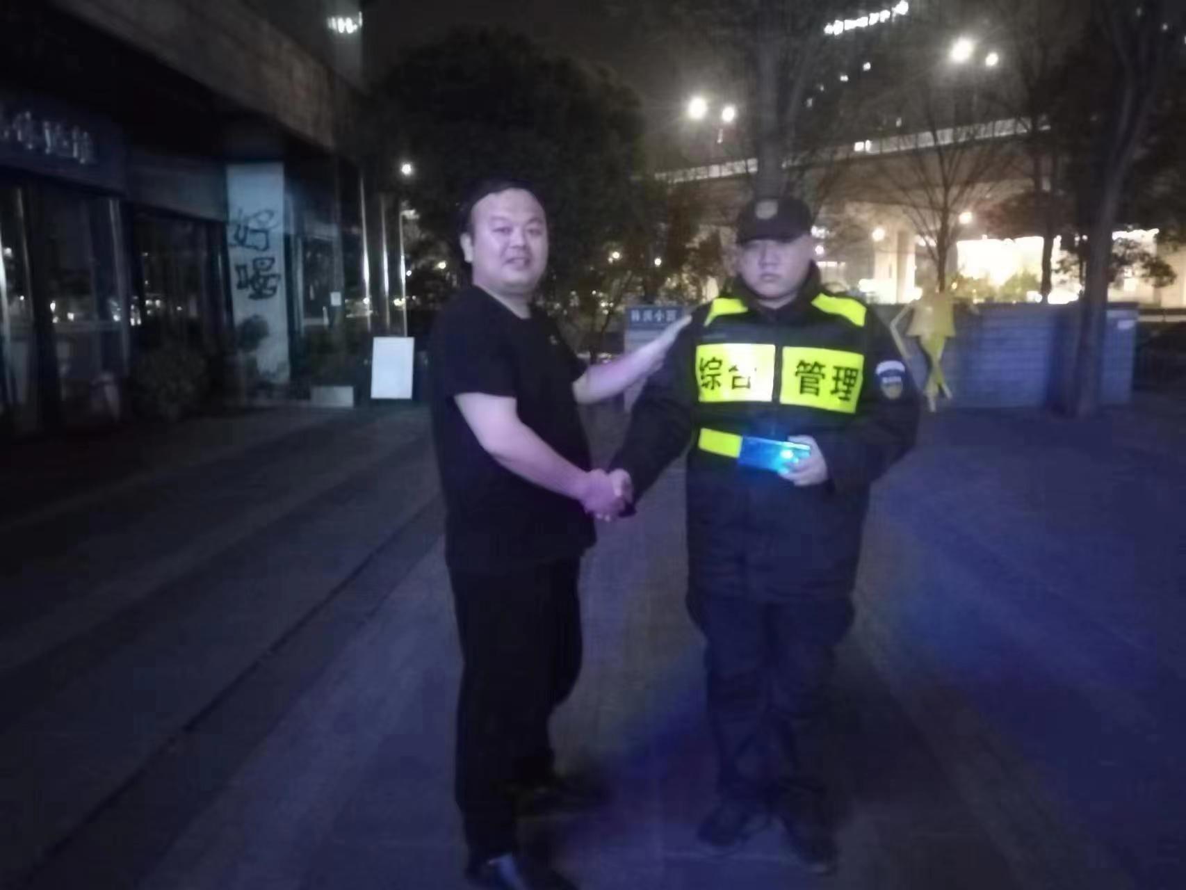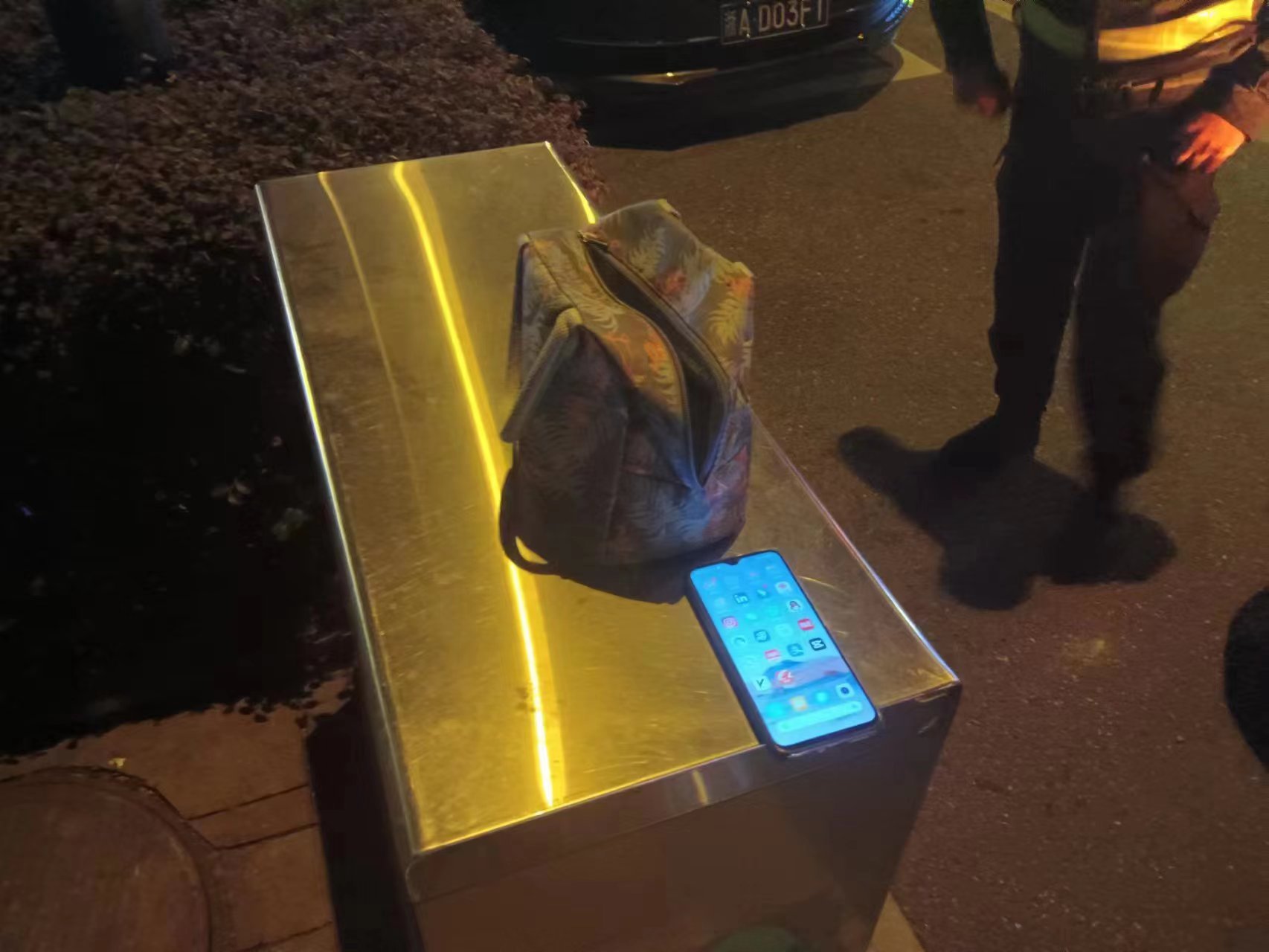 當(dāng)天20:05,公司員工王志龍?jiān)谑韪酃酚聒B路交叉口附近進(jìn)行序化管理時(shí),撿到一部華為手機(jī),隨即把情況報(bào)告了項(xiàng)目負(fù)責(zé)人,并按指示留在原地觀察尋找物品的人。