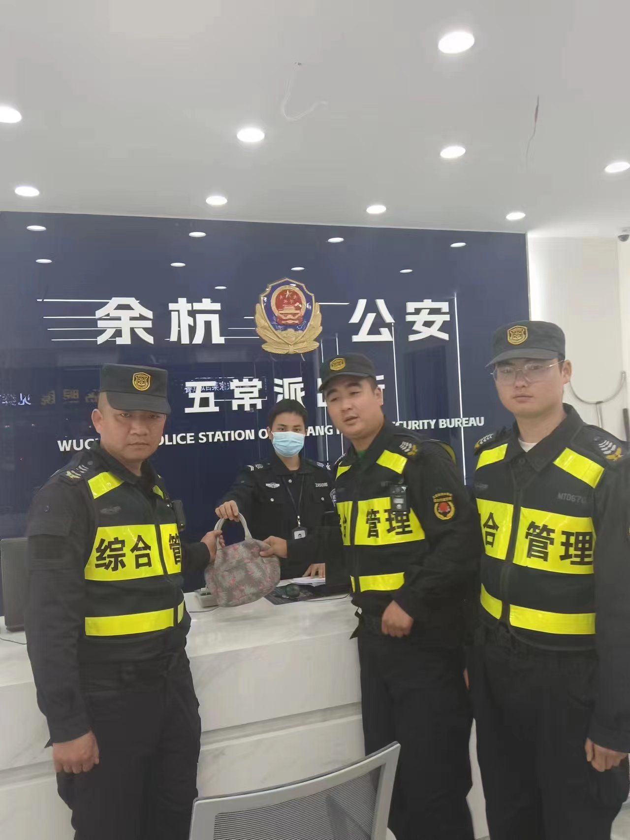 3月14日,浙江民泰公司駐杭州市余杭區(qū)五常市容項(xiàng)目員工撿到一手提包上交民警。