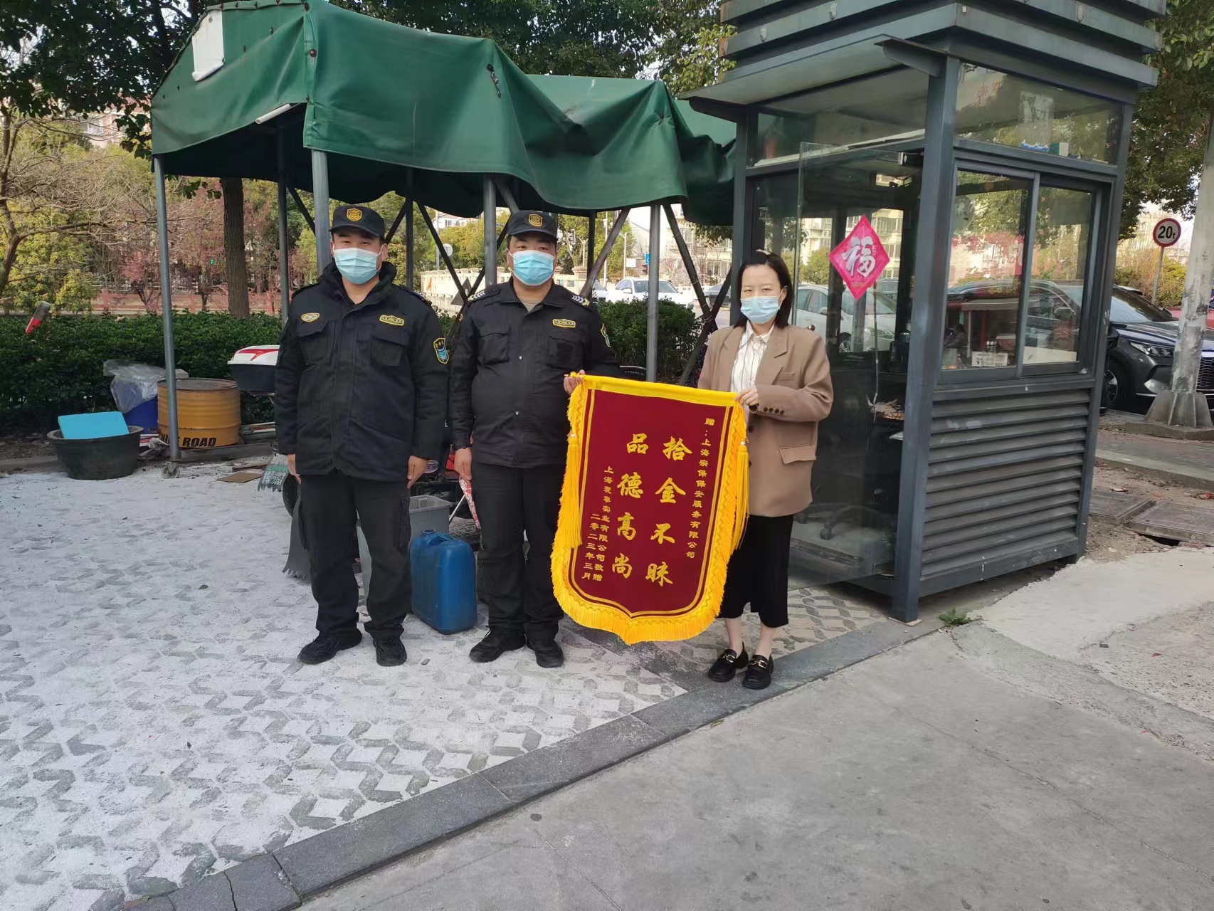 3月16日,宗保公司駐周浦區(qū)域海印·哈鄰里項(xiàng)目員工關(guān)毅亮收到市民送來的一面繡有“拾金不昧 品德高尚”的錦旗,感謝他拾金不昧、想法交還的行為。