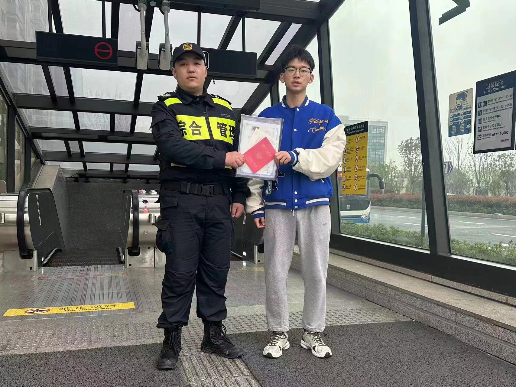 當日10:45,公司員工胡自強在沈杜公路公交站臺值勤時,撿到一部華為手機,隨即詢問周圍過往群眾,均表示沒有丟手機。于是,胡自強便將情況報告了項目隊長,并按指示邊值勤邊等失主。