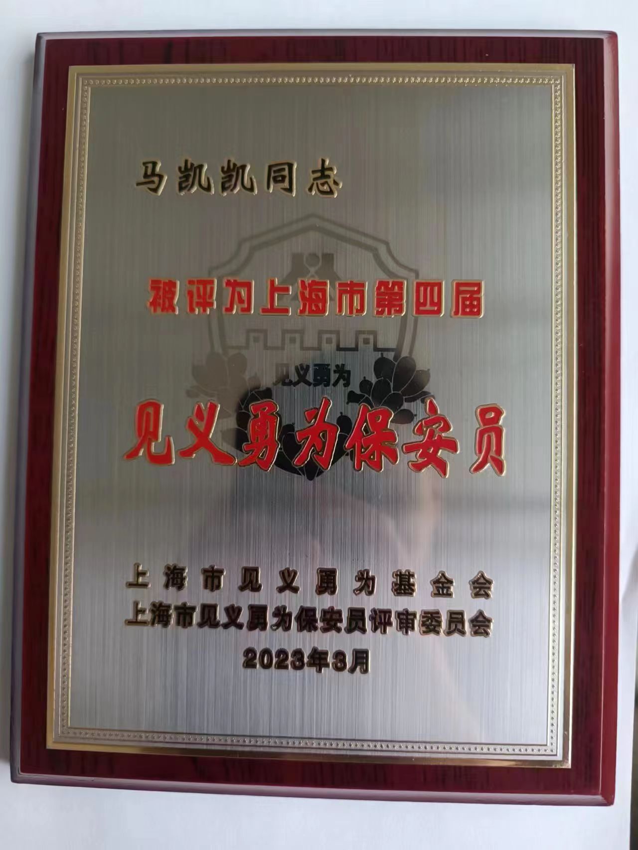 宗保公司員工朱路路、馬凱凱被授予“上海市見義勇為保安員”稱號(hào),韓洪亮榮獲上海市保安人員“見義有為”獎(jiǎng)。