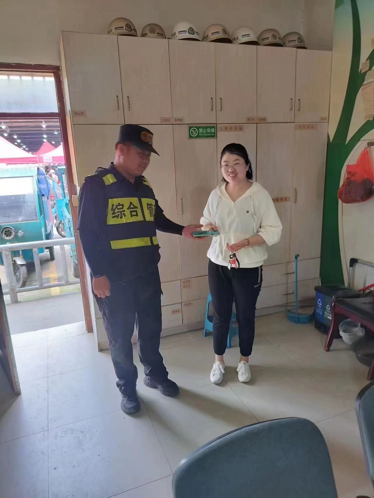 11:20左右,一位身穿白色衣服的女子前來詢問是否撿到一部華為手機。周雷向該女子了解了手機的顏色、型號,確認(rèn)其是失主后,帶女子到市場辦公室取手機交還給了女子。女子拿到失而復(fù)得的手機十分高興,連連向民泰公司員工周雷道謝。