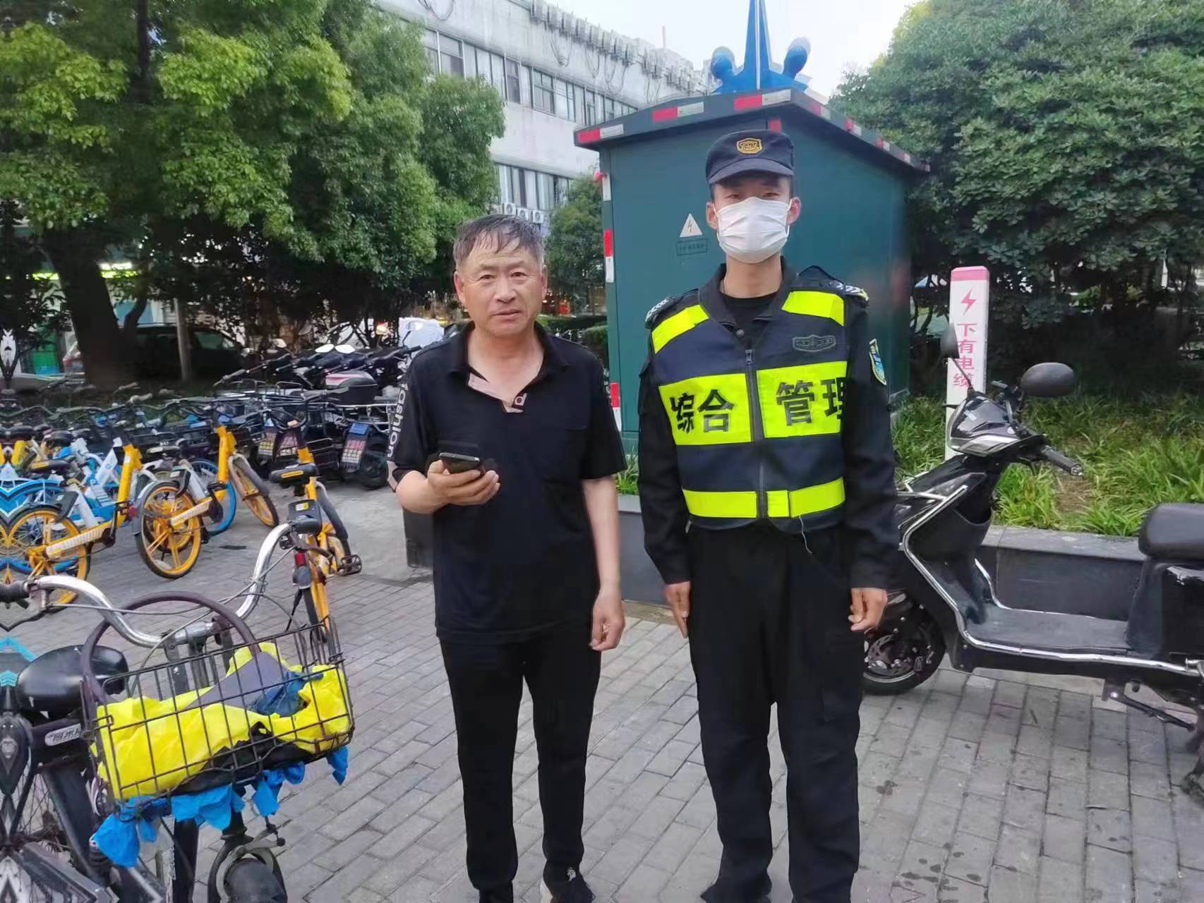 當(dāng)天9:20,公司員工顧俊和單峰在東靖路205號附近巡邏時,撿到一部墨綠色華為手機,詢問周圍人員無人認(rèn)領(lǐng)后,便將情況報告了項目負(fù)責(zé)人,并按指示邊巡邏邊等待失主聯(lián)系。