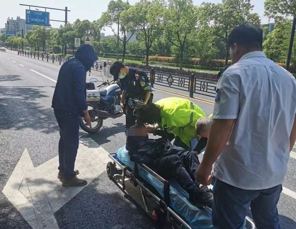 當(dāng)日14:00,公司員工周樂邦與派出所輔警楊應(yīng)平在通運路巡邏時,看到馬路上躺著一位老人,便立即靠邊停車上前察看。老人左臉貼著地面,嘴角和左手腕處流著血。