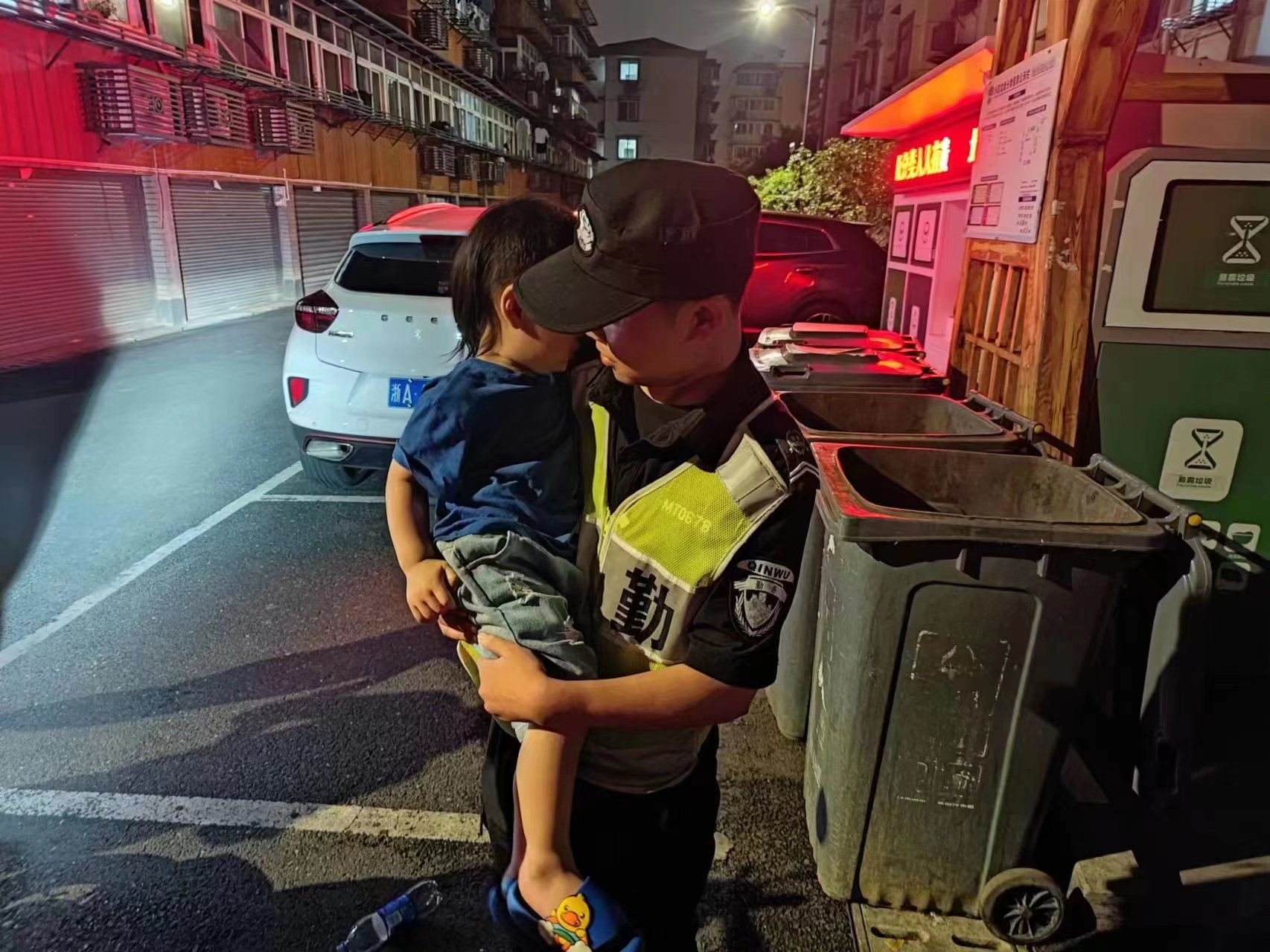 當(dāng)天20:50,公司員工劉偉、和一楓和鄭統(tǒng)在良渚街道玉琮路巡邏時,看到一個小男孩一邊走一邊不停地轉(zhuǎn)頭張望,身邊沒有大人陪同,好像很無奈無助的樣子。