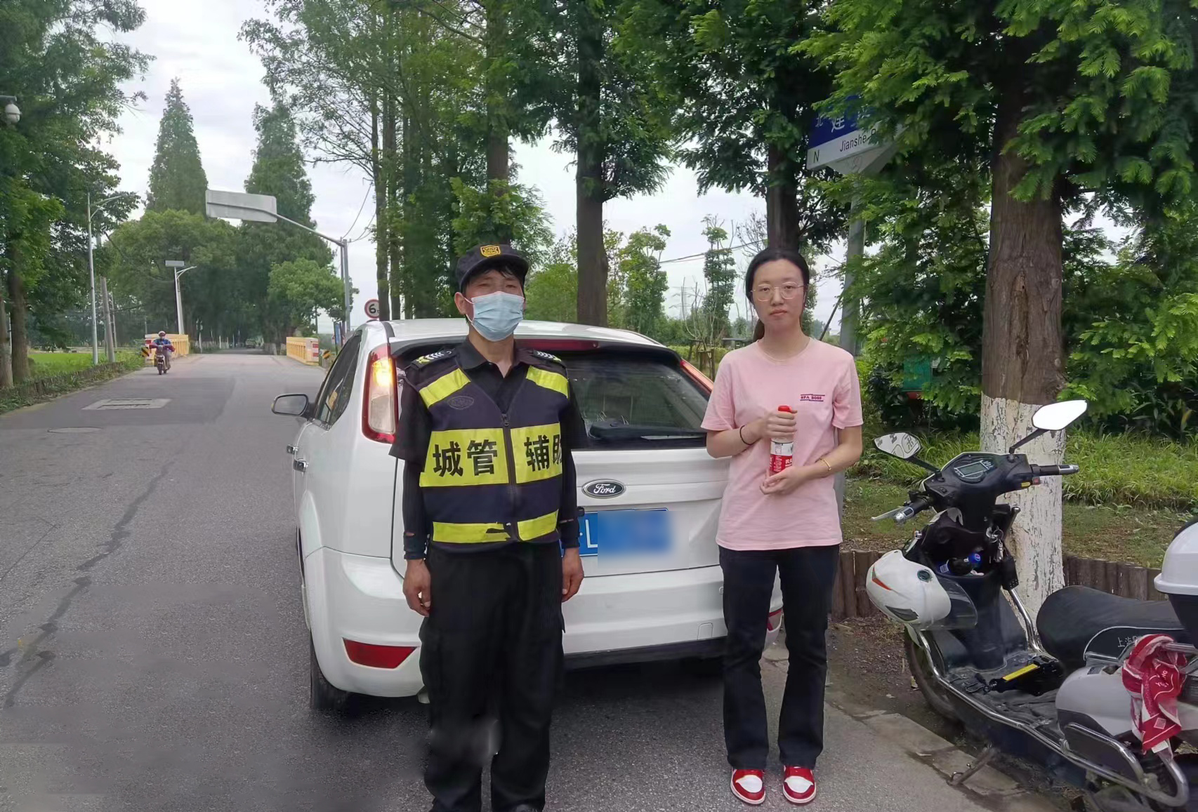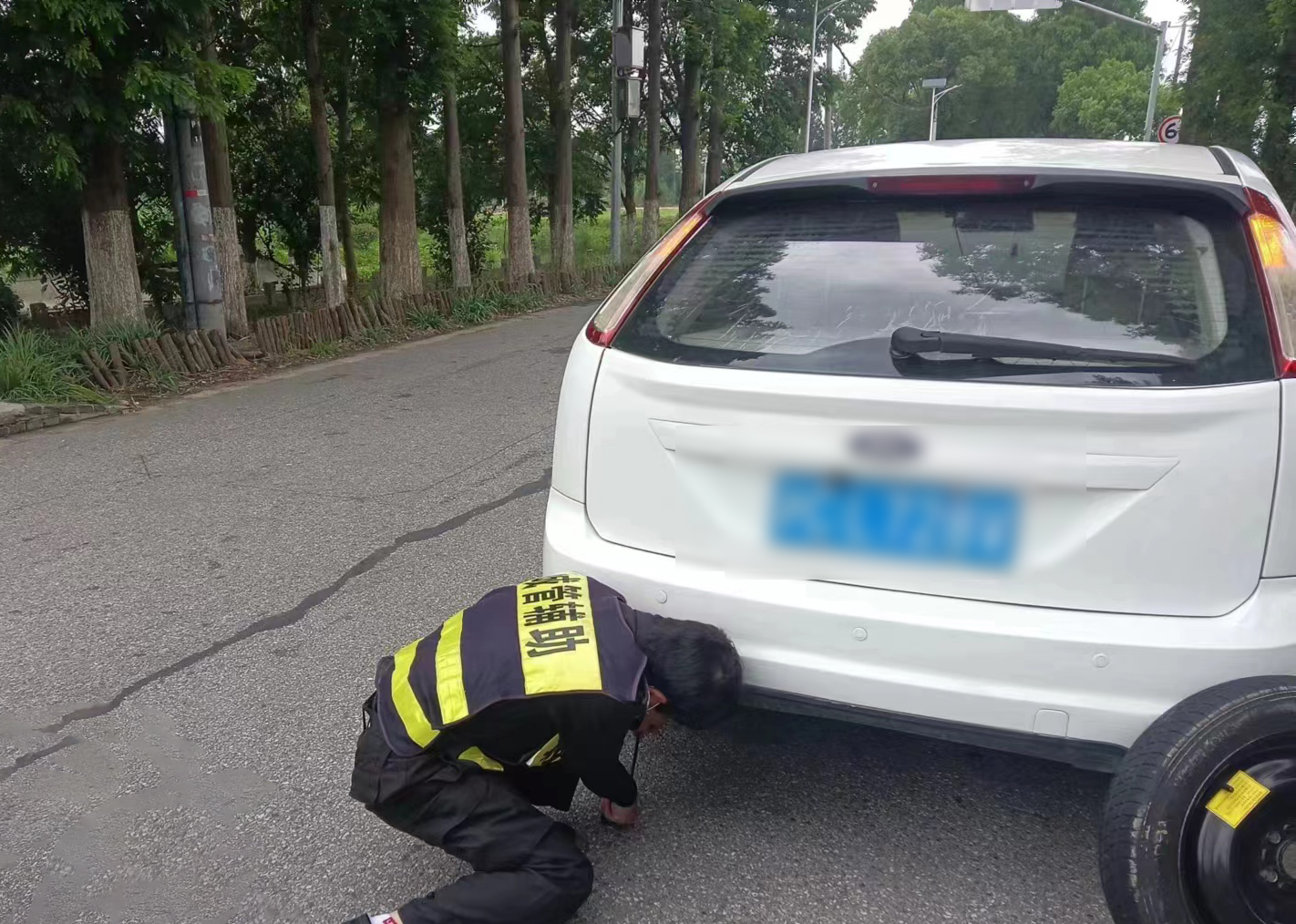 當(dāng)日9:10,公司員工花秋峰在建設(shè)路周鄧公路路口巡邏時,遇到一女士求助,稱自己的車后輪沒氣了,撥打了救援中心電話,但救援中心說救援車一時來不了,而公司里有非常重要的事情,需要她馬上趕去處理,看能不能幫忙換一下備用輪胎。