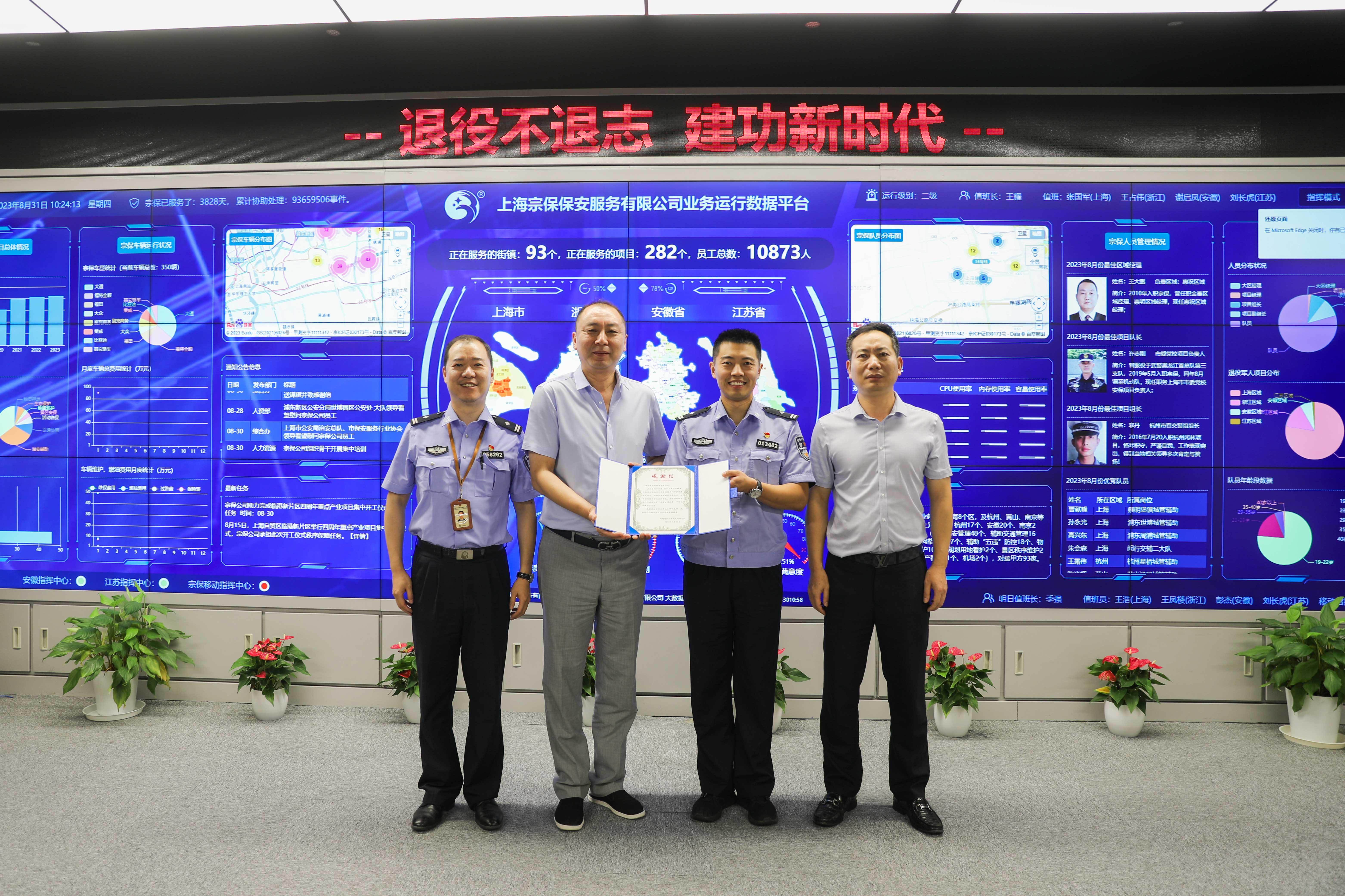 8月31日,浦東新區(qū)公安分局世博園區(qū)公安處交巡警大隊將一面繡有“守一方熱土 保一方平安”的錦旗和一封感謝信送到宗保公司董事長王耀的手中,感謝公司對交巡警大隊工作的大力支持。