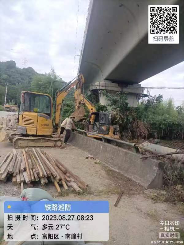 當日8:23,公司員工王文華巡查富陽站至桐廬站區(qū)間山坎特大橋k52+017線路時,發(fā)現(xiàn)有挖掘機正在鐵路橋邊紅線區(qū)域內(nèi)作業(yè),涉嫌非法施工。王文華立即跑上前制止,并第一時間將情況報告杭州工務(wù)段桐廬車間、杭州鐵路公安處桐廬鐵路派出所。