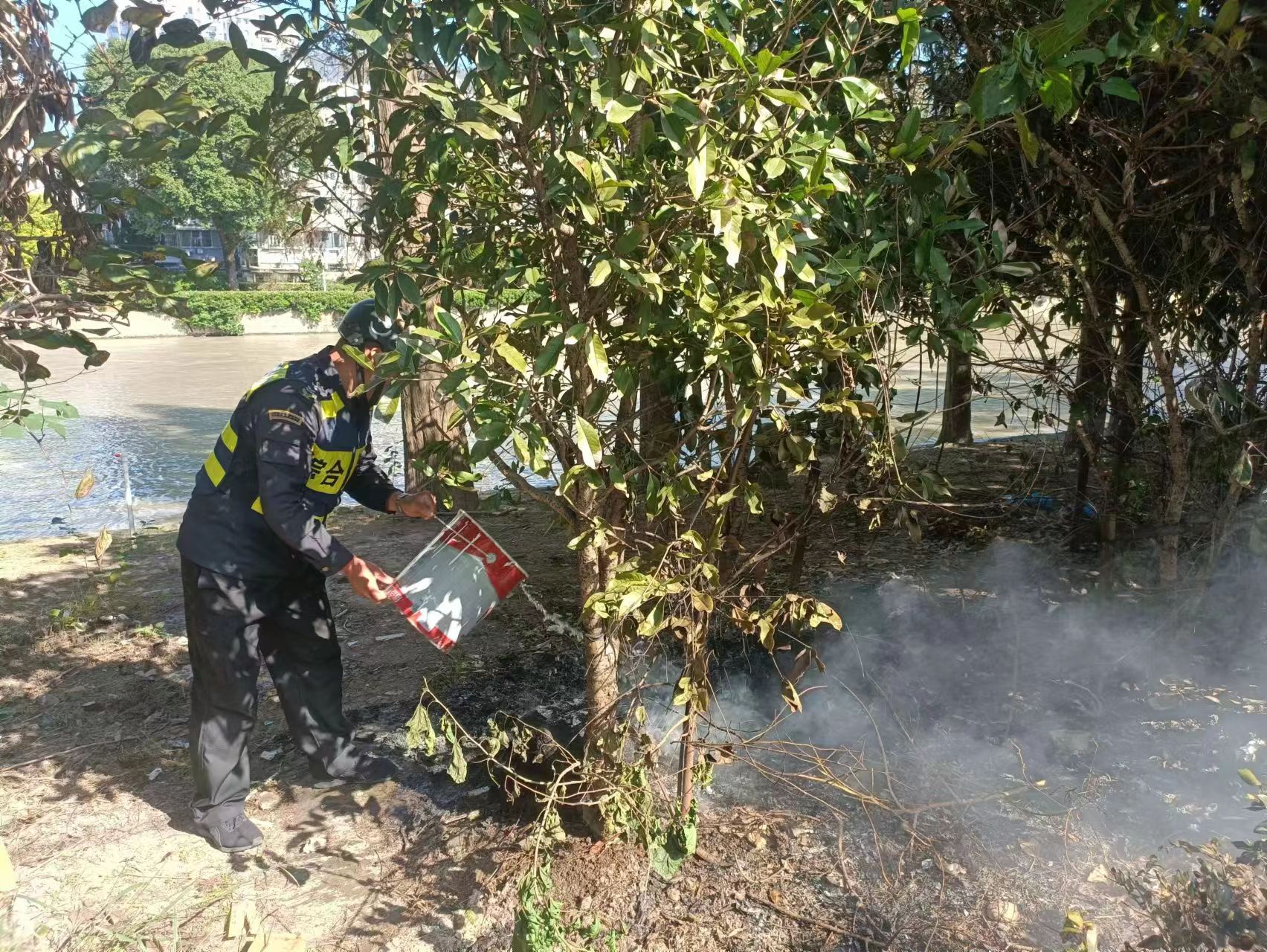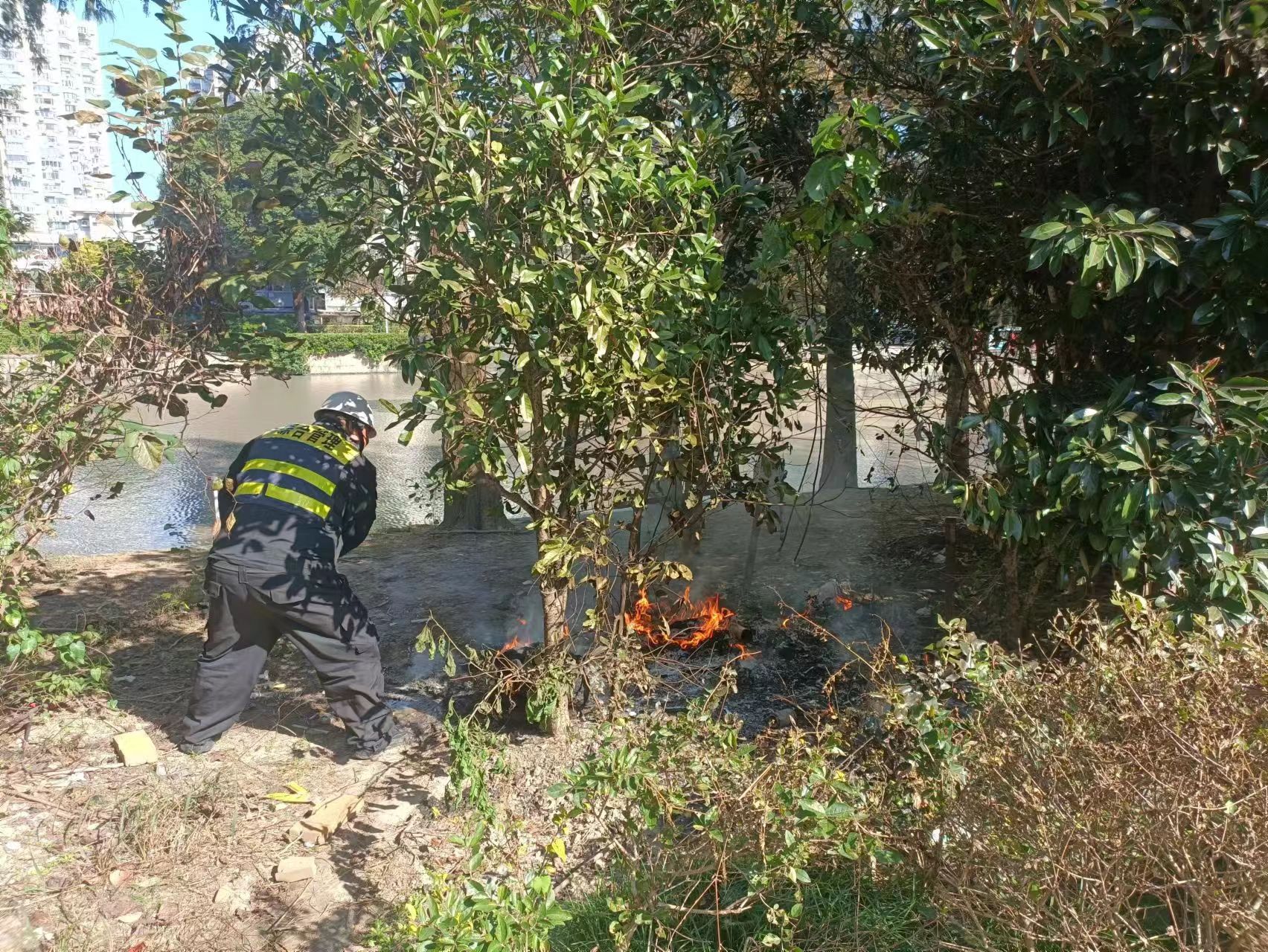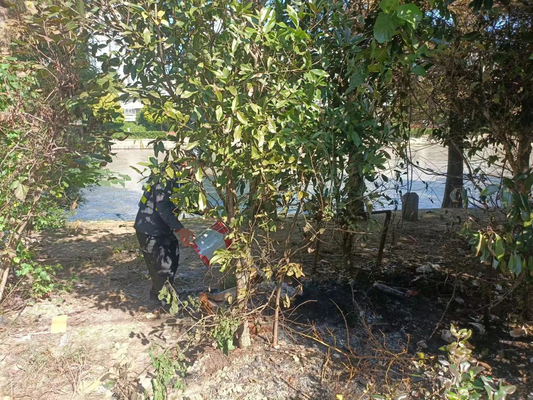 10月21日9:30,宗保公司駐浦東新區(qū)三林市容項(xiàng)目員工單野和趙樹(shù)寧在三林鎮(zhèn)楊新路小花園巡查時(shí),發(fā)現(xiàn)河邊雜草冒煙起火。兩人立即跑到附近居民家中,借來(lái)水桶提水滅火。經(jīng)過(guò)十幾分鐘的撲救,野火被撲滅,避免了火勢(shì)進(jìn)一步擴(kuò)大和蔓延。