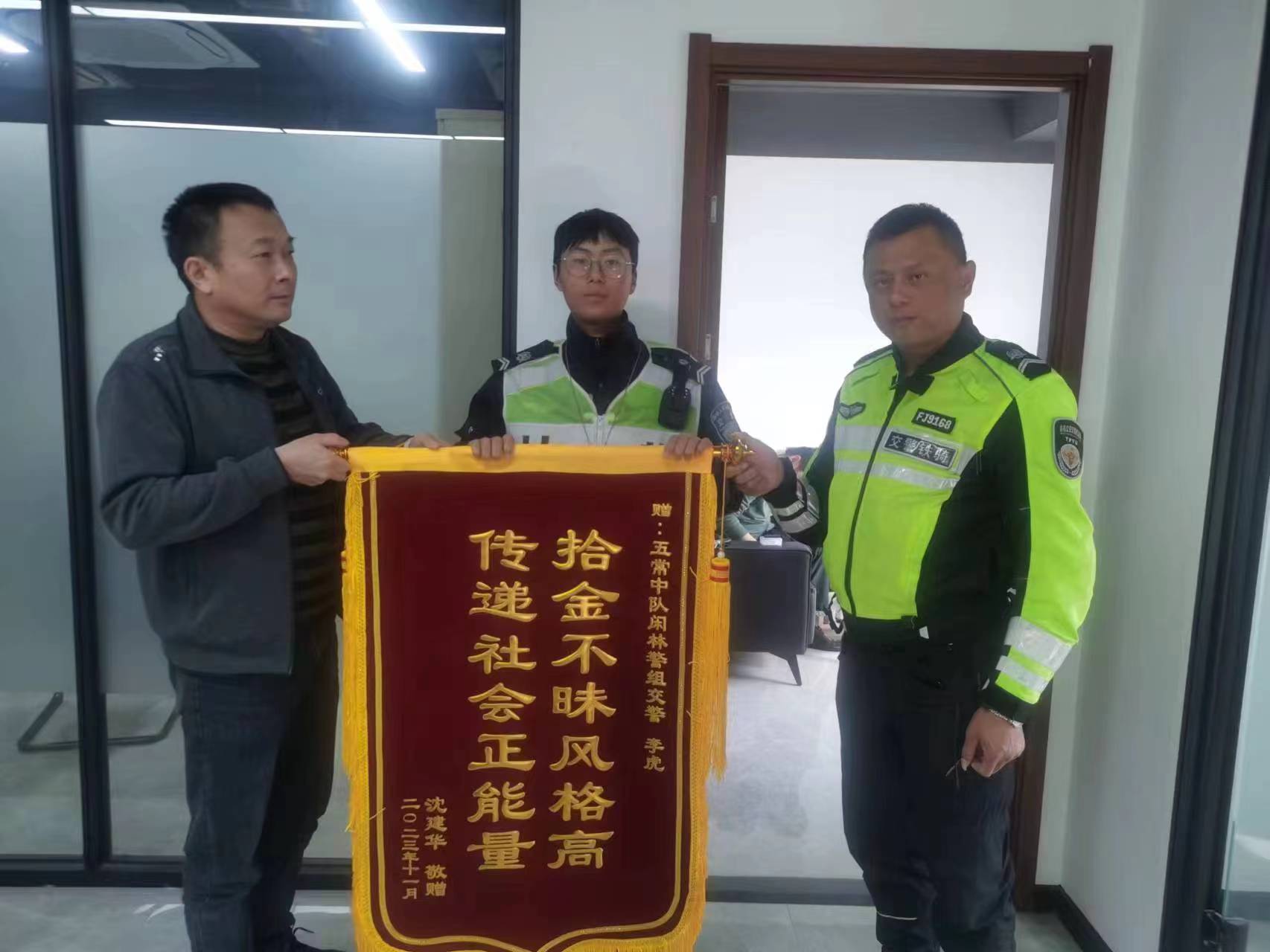 11月17日,浙江民泰公司駐杭州市余杭區(qū)閑林交管輔助項目員工李虎收到市民沈先生送來的一面繡有“拾金不昧風格高 傳遞社會正能量”的錦旗,感謝他拾金不昧的高尚風格。