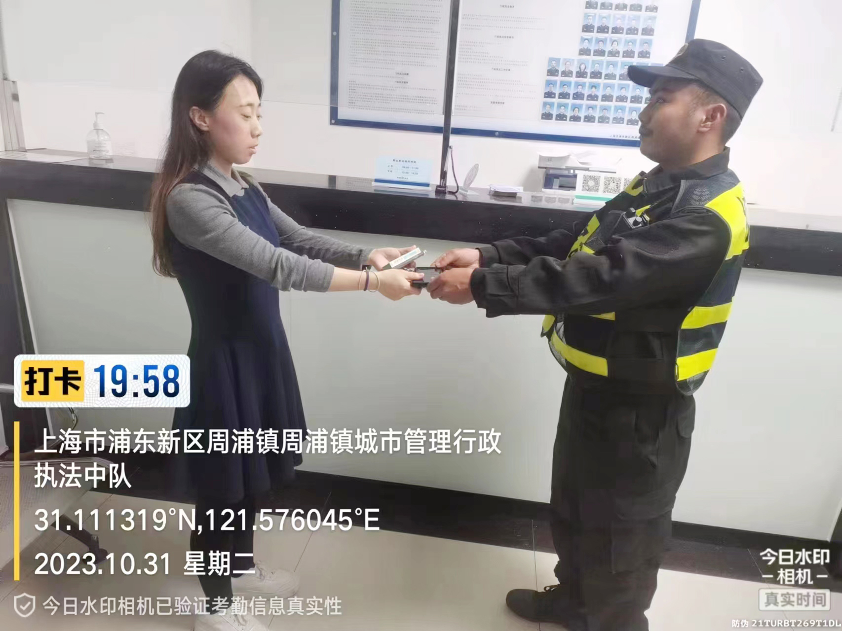 10月31日19:09,宗保公司駐浦東新區(qū)周浦市容項目員工袁代剛在年家浜路萬達廣場2號口巡查時,撿到一部華為手機,報告班組長后便在原地等待。大約過了20分鐘,仍不見失主來尋找,袁代剛就將手機送到了城管中隊。17:58,一女子打來電話詢問,隨后趕到城管中隊。袁代剛核實確認女子是失主后,就將手機交還給了她。女子表示,原本想丟掉的手機就找不回來,現(xiàn)在被宗保員工撿到,不但交到了城管中隊,而且又交還給了自己,十分高興,再三向宗保員工袁代剛表示感謝。
