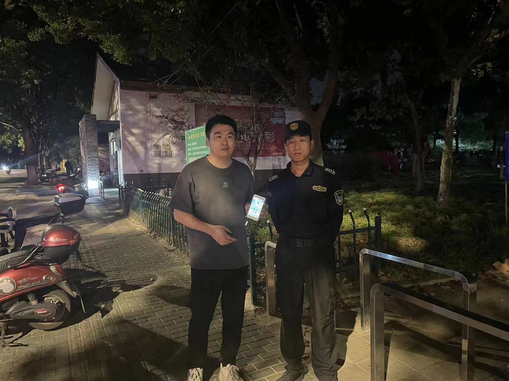 11月19日13:15,宗保公司駐浦東新區(qū)沔青公園項目員工周會達在兒童樂園路口巡查時,撿到一部蘋果14手機,隨即將情況報告了帶隊隊長,并按指示將手機送到監(jiān)控室。大概過了20多分鐘,一位女士打電話過來尋找手機,周會達問清手機的顏色、型號后,與她約好在監(jiān)控室碰面。很快,一位女士趕到監(jiān)控室,周會達核對好手機信息,確認女士是失主后,就將手機交還給了她。