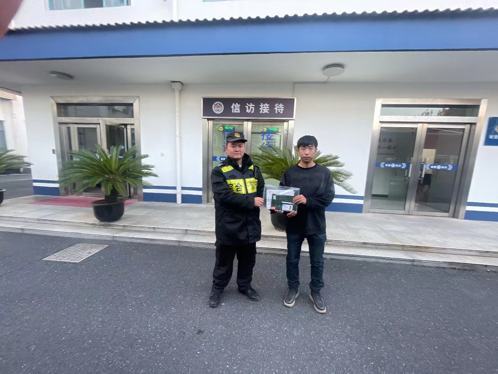 11月22日16:25,宗保公司駐浦東新區(qū)南碼頭網(wǎng)格項目員工徐寶輝在高科西路浦三路巡邏時,撿到一部白色蘋果13手機(jī),隨即報告了帶班組長,并按指示邊巡邏邊等待失主聯(lián)系。不一會兒,一位女士打來電話,語氣顯得非常著急。徐寶輝一邊安慰女士,一邊與她約好碰面時間地點。很快,一位身穿黑衣的女士趕到現(xiàn)場,核實確認(rèn)該女士是失主后,徐寶輝就將手機(jī)交還給了她。為表示感謝女士要發(fā)微信紅包給徐寶輝,被他婉言謝絕了。