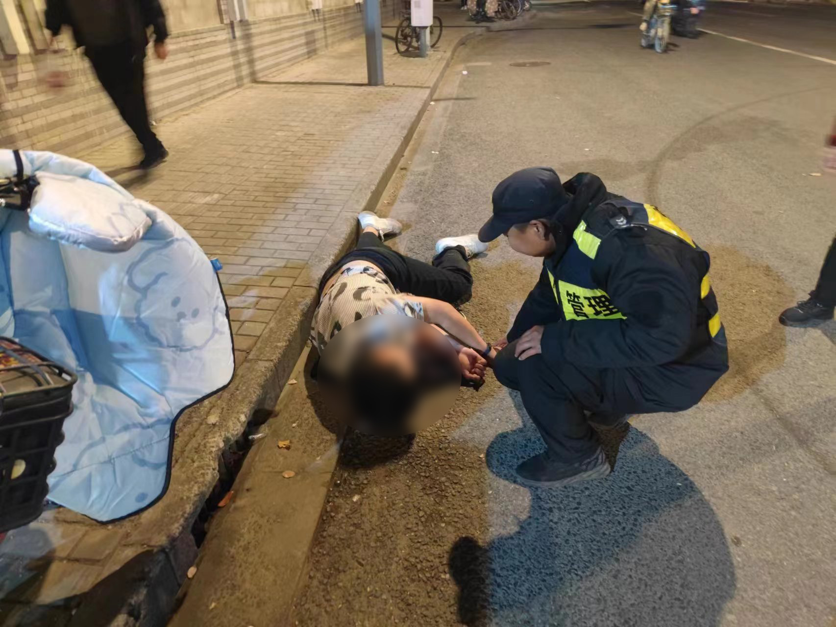 當日20:00,公司員工陳靜潤和龐寶山在楊思路地鐵站東側巡查時,看見一名男子躺在地上,便趕緊上前察看。男子身上散發(fā)著濃濃的酒味,昏睡著疑似飲酒過量,輕拍其未能喚醒。