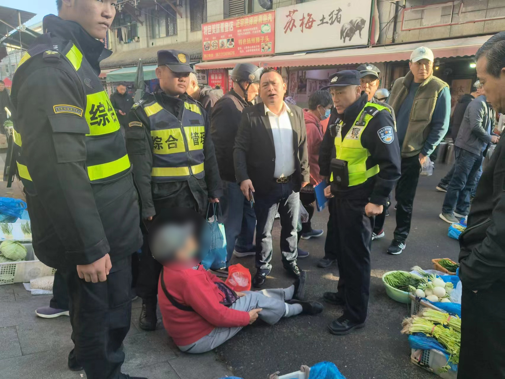 當天9:00,公司員工黃建成在東南菜市場巡查時,發(fā)現(xiàn)一位老人坐在地上,抱著腿發(fā)出痛苦的聲音。黃建成見狀趕緊上前詢問,老人說不小心摔倒了,現(xiàn)在感覺腿很痛不能動。