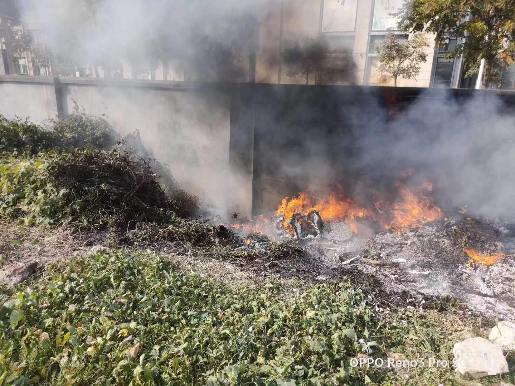 當日10:50,宗保公司員工王夢宇在拱北路與拱亮路交叉口值勤時,發(fā)現(xiàn)前方路邊空地內(nèi)冒著滾滾濃煙,便立刻叫上附近同事前去察看,原來是路邊院墻內(nèi)側堆放的廢棄建材起火。