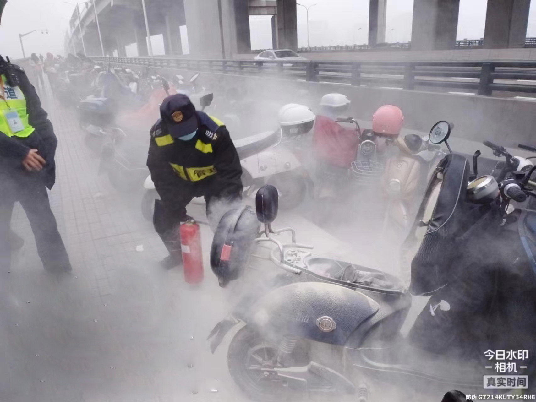 電瓶車突然起火危險(xiǎn) 兩員工及時(shí)撲滅避險(xiǎn)