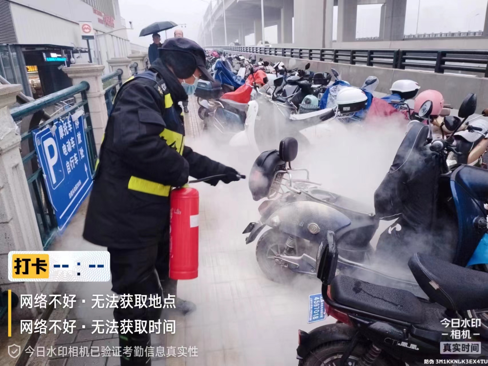 當(dāng)日8:10,公司員工徐雷和易勝利在羅山南路周浦東地鐵站四號(hào)口值勤時(shí),一位市民慌慌張張地跑來(lái)求助,稱自己的電瓶車突然著火請(qǐng)求幫助。