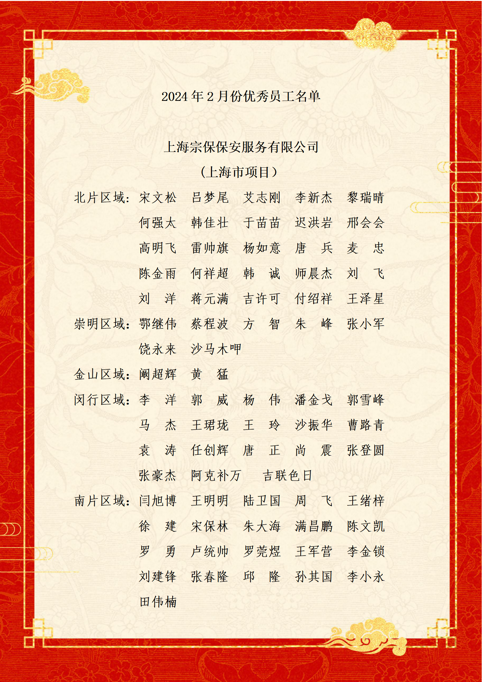 2月份,公司廣大員工根據(jù)甲方的任務(wù)要求,按照公司的部署安排,積極踐行公司“誠信為本 服務(wù)至上”的經(jīng)營理念,講大局、講奉獻(xiàn),擔(dān)當(dāng)作為、務(wù)實肯干,助力完成了春節(jié)期間秩序維護(hù)、市政協(xié)第十四屆二次會議、張惠妹ASMR世界巡回演唱會等多個大型活動臨時保障任務(wù),全力配合甲方做好了城市管理輔助、治安巡邏聯(lián)防、物業(yè)服務(wù)保障、生態(tài)環(huán)境保護(hù)、高鐵線路巡防等工作。期間,涌現(xiàn)出了一批盡心履責(zé)、崗位建功、拾金不昧、熱心助人的優(yōu)秀員工和先進(jìn)典型。