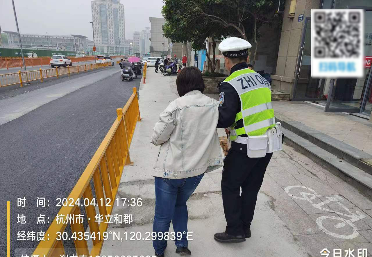4月12日,浙江民泰公司駐杭州市臨平區(qū)東湖交管輔助項(xiàng)目員工熱心幫助代步車(chē)女士。