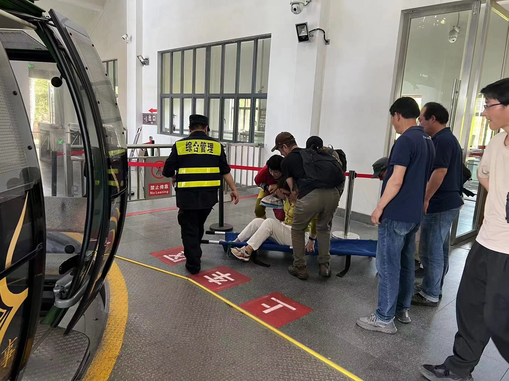 游客腳踝扭傷被困 員工合力擔(dān)架送醫(yī)