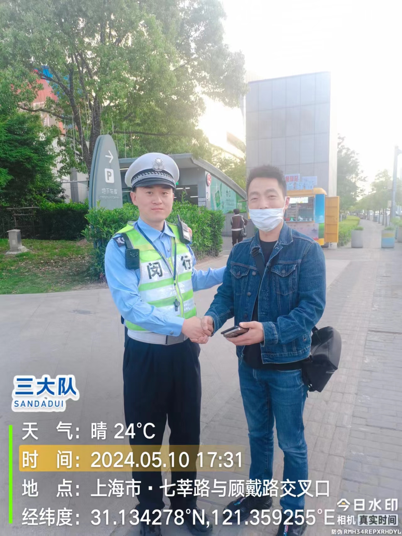 5月10日7:34,宗保公司駐閔行區(qū)莘莊工業(yè)區(qū)項(xiàng)目員工陳濤在中春路與聯(lián)農(nóng)路交叉路口開展早高峰護(hù)校執(zhí)勤時(shí),撿到一部OPPO牌手機(jī),報(bào)告帶班組長(zhǎng)后,便在原地邊執(zhí)勤邊等失主來尋找。過了40多分鐘,一男子打來電話說是自己手機(jī)丟了。陳濤簡(jiǎn)單問了些手機(jī)信息,隨即與男子約定了碰面地點(diǎn)。不一會(huì)兒,一男子騎著電瓶車急匆匆來到碰面地點(diǎn)。陳濤核實(shí)確認(rèn)男子是失主后,將手機(jī)交還給了他。男子拿到手機(jī),連聲向陳濤道謝。