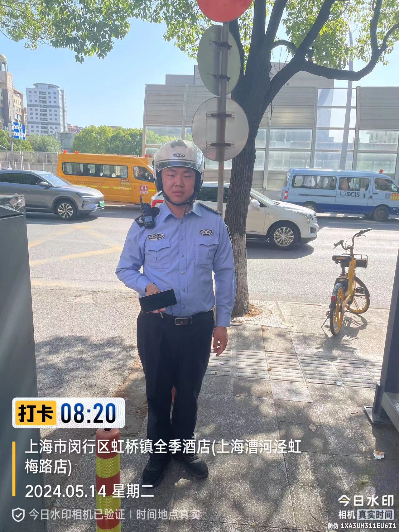 5月14日8:17,宗保公司駐閔行區(qū)虹橋交管輔助項(xiàng)目員工殷天門在吳中路合川路路口執(zhí)勤時(shí),撿到一部VIVO手機(jī),詢問周圍路人無人認(rèn)領(lǐng)后,便將情況報(bào)告了班組長(zhǎng),并按指示隨時(shí)注意接聽失主來電。直至下班時(shí)間,仍然沒有人打來電話尋找,殷天門就將手機(jī)上交到虹橋派出所,由派出所民警尋找失主。