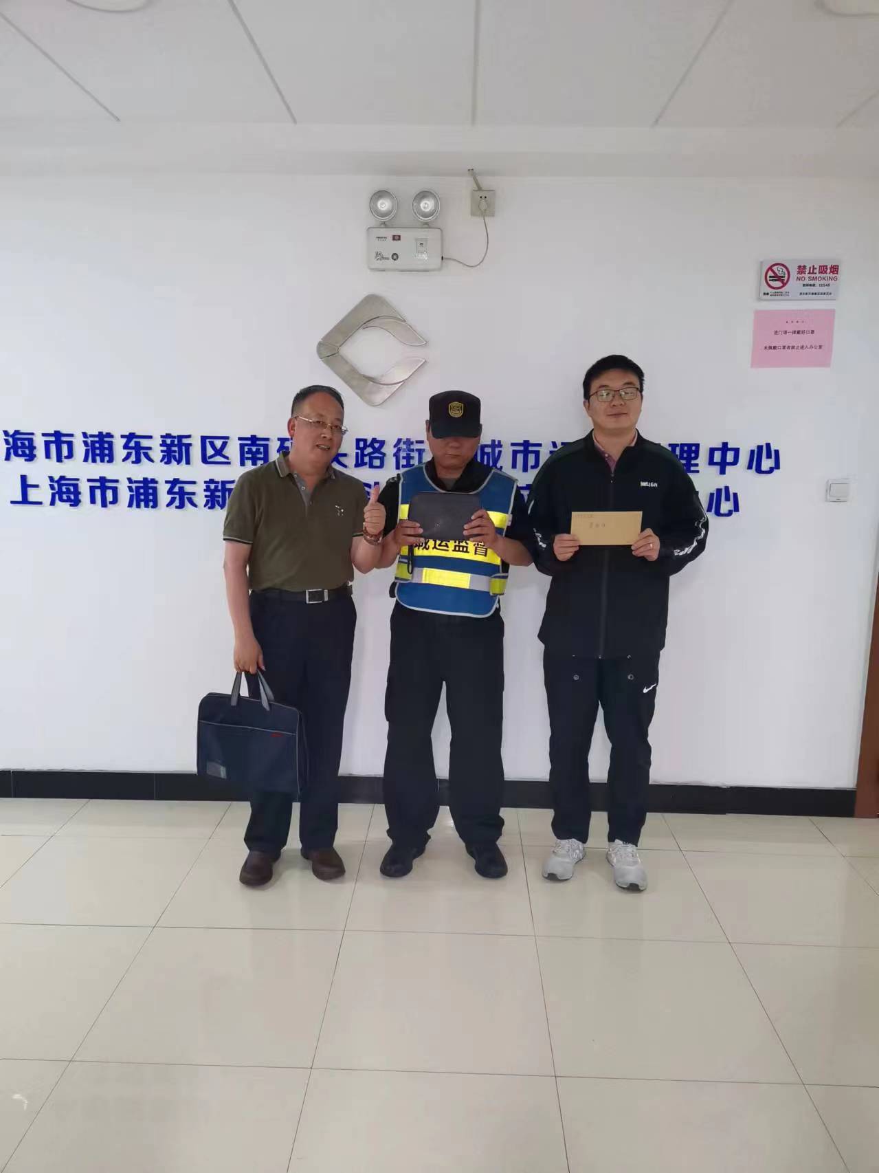 17:00,當(dāng)楊召群再次巡查到楊高南路1998號(hào)時(shí),發(fā)現(xiàn)失主在附近留有尋物啟事,隨即按照啟事上的電話(huà)與失主取得了聯(lián)系,確定對(duì)方是失主后,就讓失主前往南碼頭城運(yùn)中心領(lǐng)取手提包。