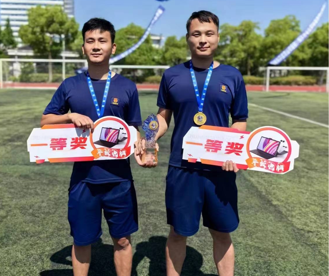 公司員工陳君、秦建豪、余思永獲得消防栓快速出水操(團隊)賽第一名
