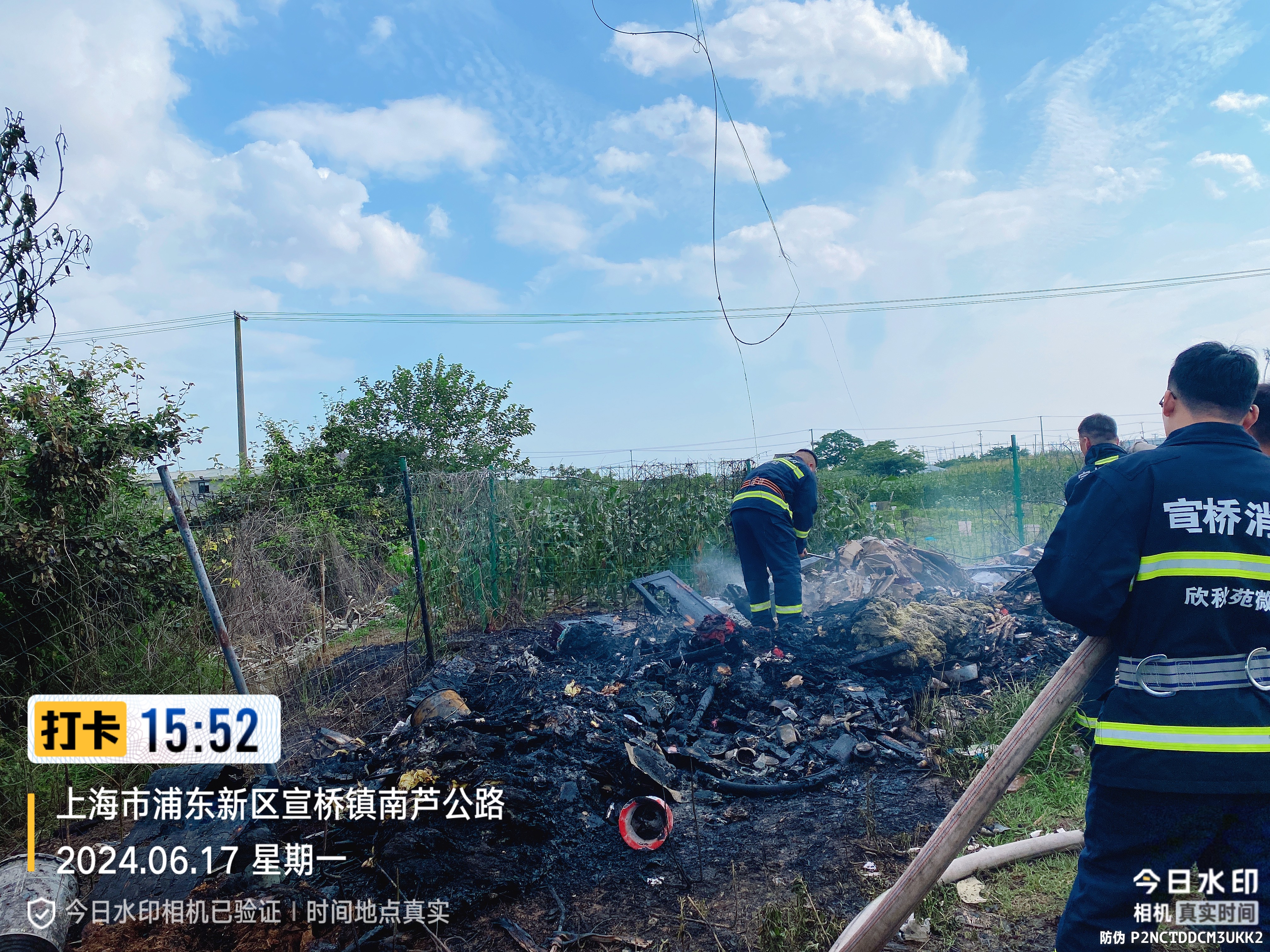 6月17日,宗保公司駐浦東新區(qū)宣橋鎮(zhèn)專職消防站(陸橋分站)員工快速出警,及時(shí)撲滅一起火情。