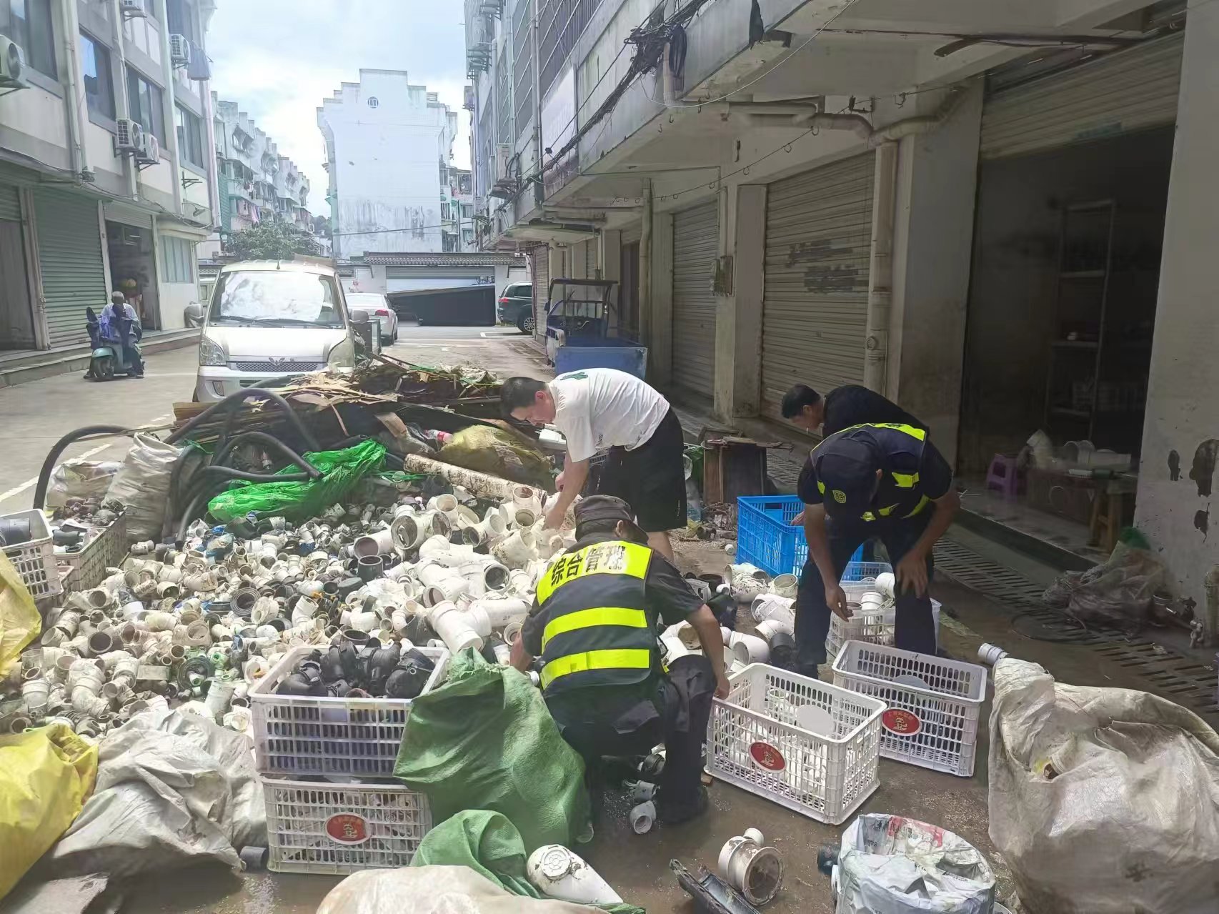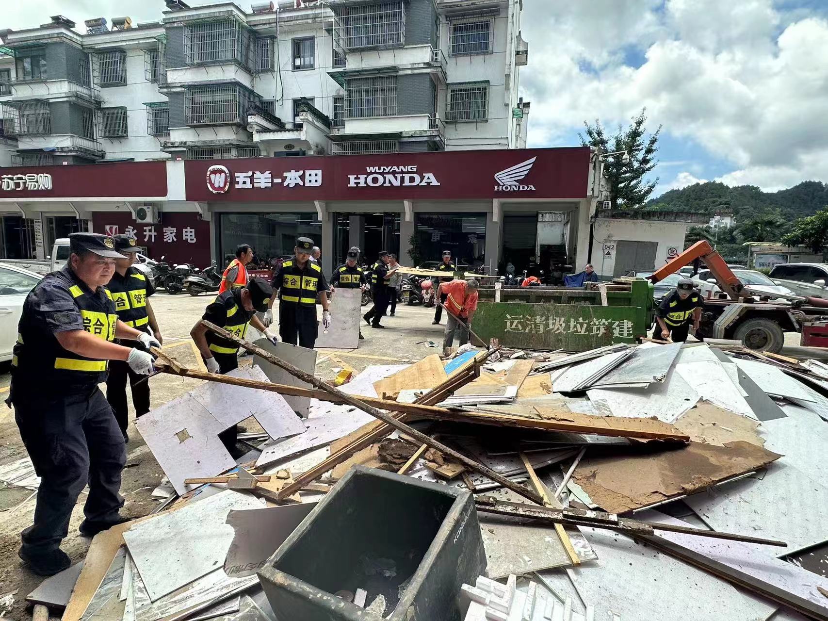 6月20日,安徽黃山市普降大暴雨,河流猛漲,山洪暴發(fā),歙縣多處路段出現(xiàn)積水,公司駐歙縣市容項(xiàng)目接到縣城管局抗洪救災(zāi)要求后,立即開展抗洪搶險(xiǎn)救援。他們協(xié)助轉(zhuǎn)移受困群眾,全力清理垃圾淤泥,仔細(xì)排查隱患區(qū)域,用實(shí)際行動(dòng)展現(xiàn)了公司員工的良好形象。