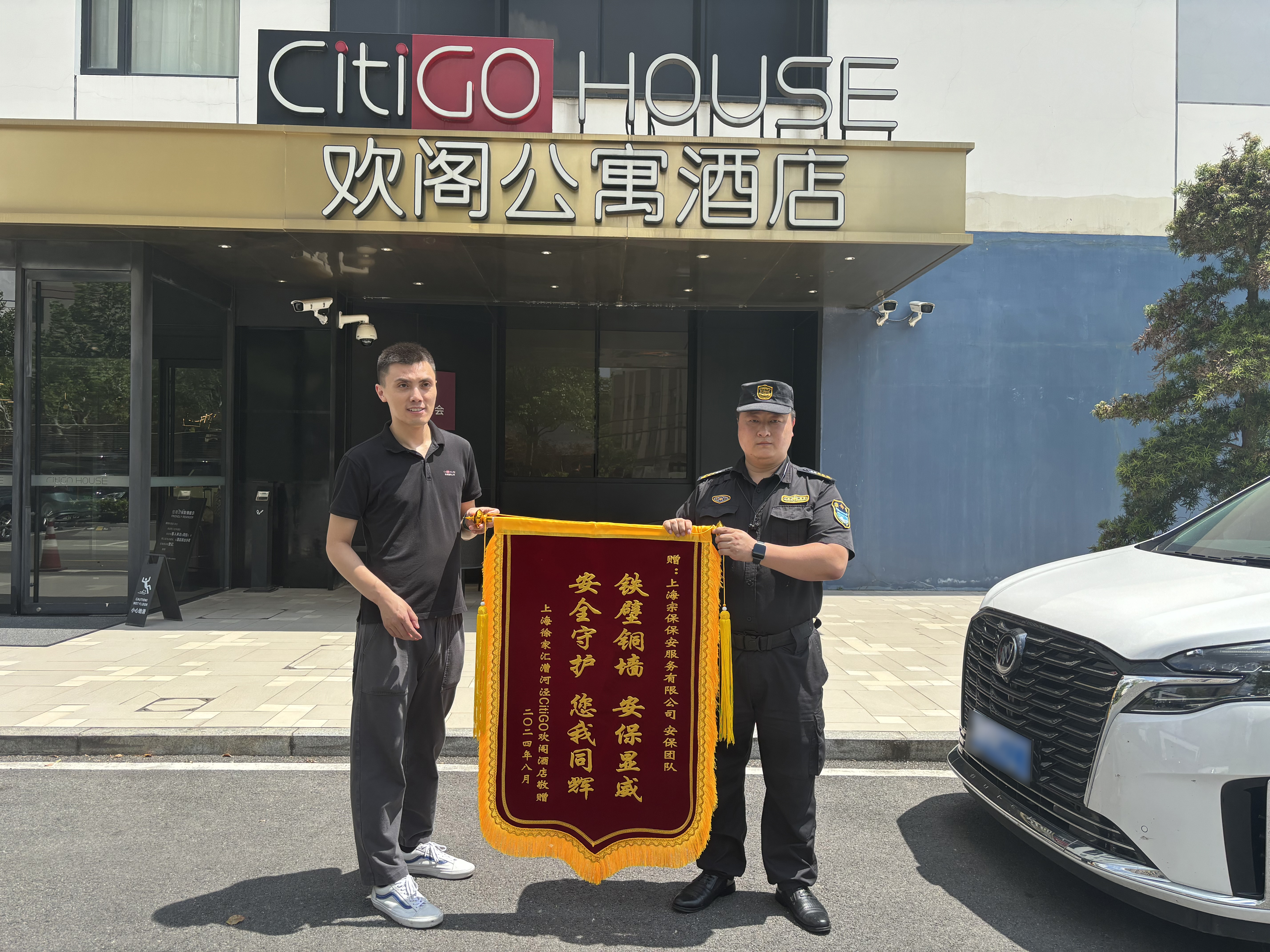 8月14日,宗保公司駐徐匯區(qū)歡閣公寓酒店項目收到上海徐家匯漕河涇CitiGO歡閣酒店贈送的繡有“鐵壁銅墻 安保顯威 安全守護您我同輝”的錦旗,贊揚公司項目員工警惕勇為的出色表現(xiàn)。