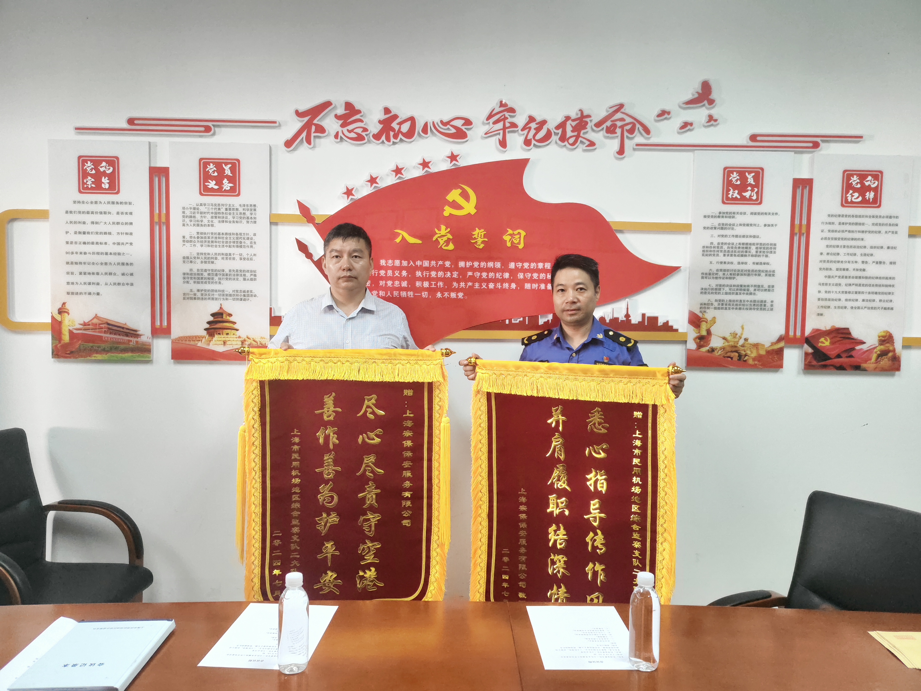 7月24日,宗保公司駐上海市民用機場地區(qū)綜合監(jiān)察支隊二大隊項目收到甲方贈送的繡有“盡心盡責守空港 善作善為護平安”的錦旗,感謝公司為助力維護浦東機場航站樓治安環(huán)境作出的積極貢獻。
