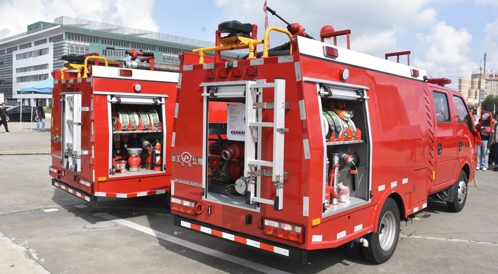 9:00綜合演練開(kāi)始前,浦東新區(qū)消防救援支隊(duì)支隊(duì)長(zhǎng)姜亦山、副支隊(duì)長(zhǎng)吳新、惠南鎮(zhèn)黨委書(shū)記江臻宇、黨委副書(shū)記、鎮(zhèn)長(zhǎng)楊揚(yáng)共同為兩個(gè)微型消防站揭牌,隨后領(lǐng)導(dǎo)們觀看了微型消防站配置的消防車(chē)輛和滅火救援器材展示。