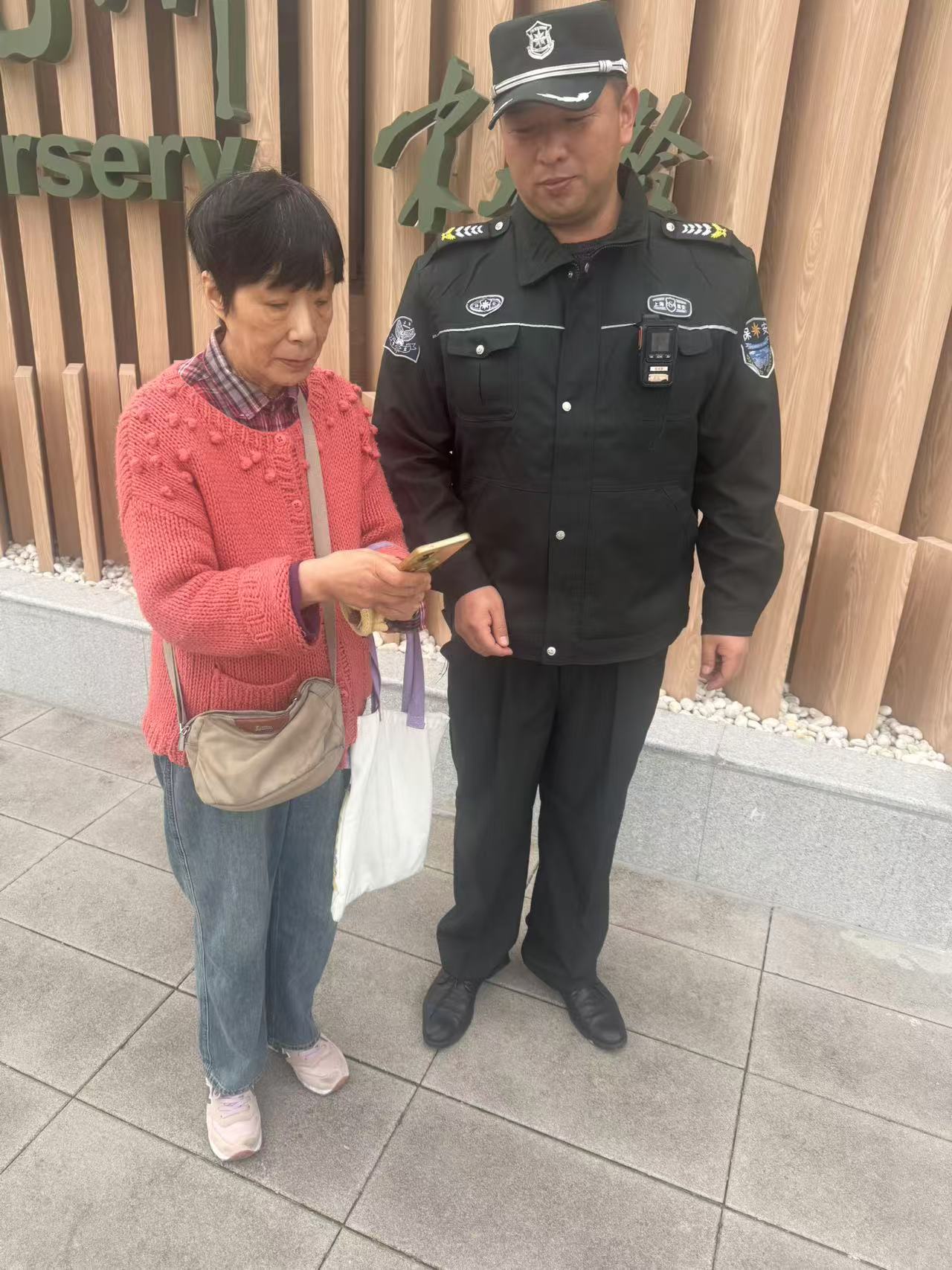 過了1個小時左右,一位神情焦急的阿姨匆匆趕來,急切地詢問是否有人撿到一部手機。正在值勤的王偉偉見狀,趕忙上前安慰阿姨,隨后帶阿姨到門衛(wèi)室認領手機。