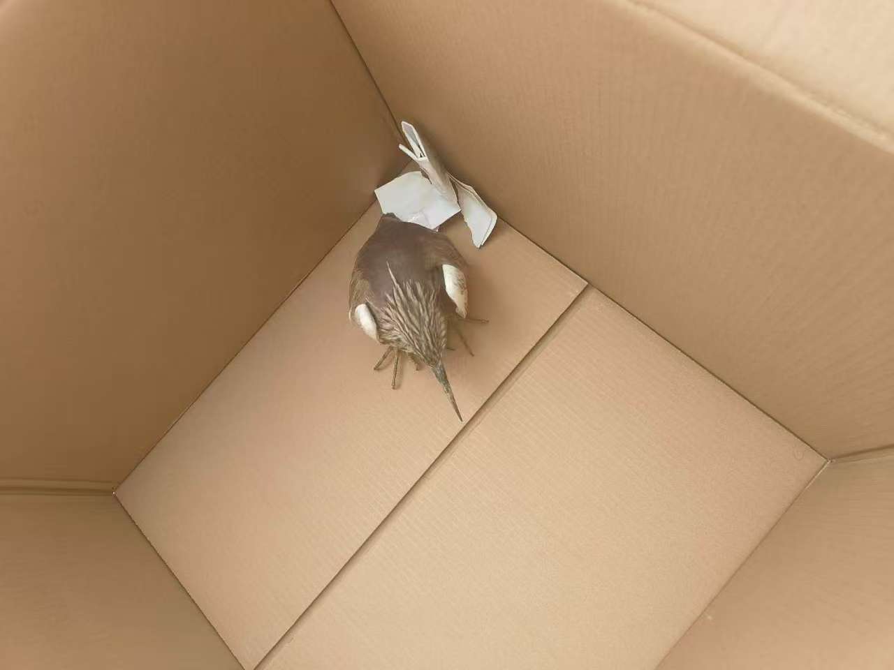 秦文重因看著該鳥不像普通的鳥類就上網(wǎng)查詢,確認其是國家一級保護動物——池鷺,隨即便趕緊找來一個干凈的紙箱,小心翼翼地將受傷的池鷺放在箱內(nèi),并向洋山公安處報告了情況。