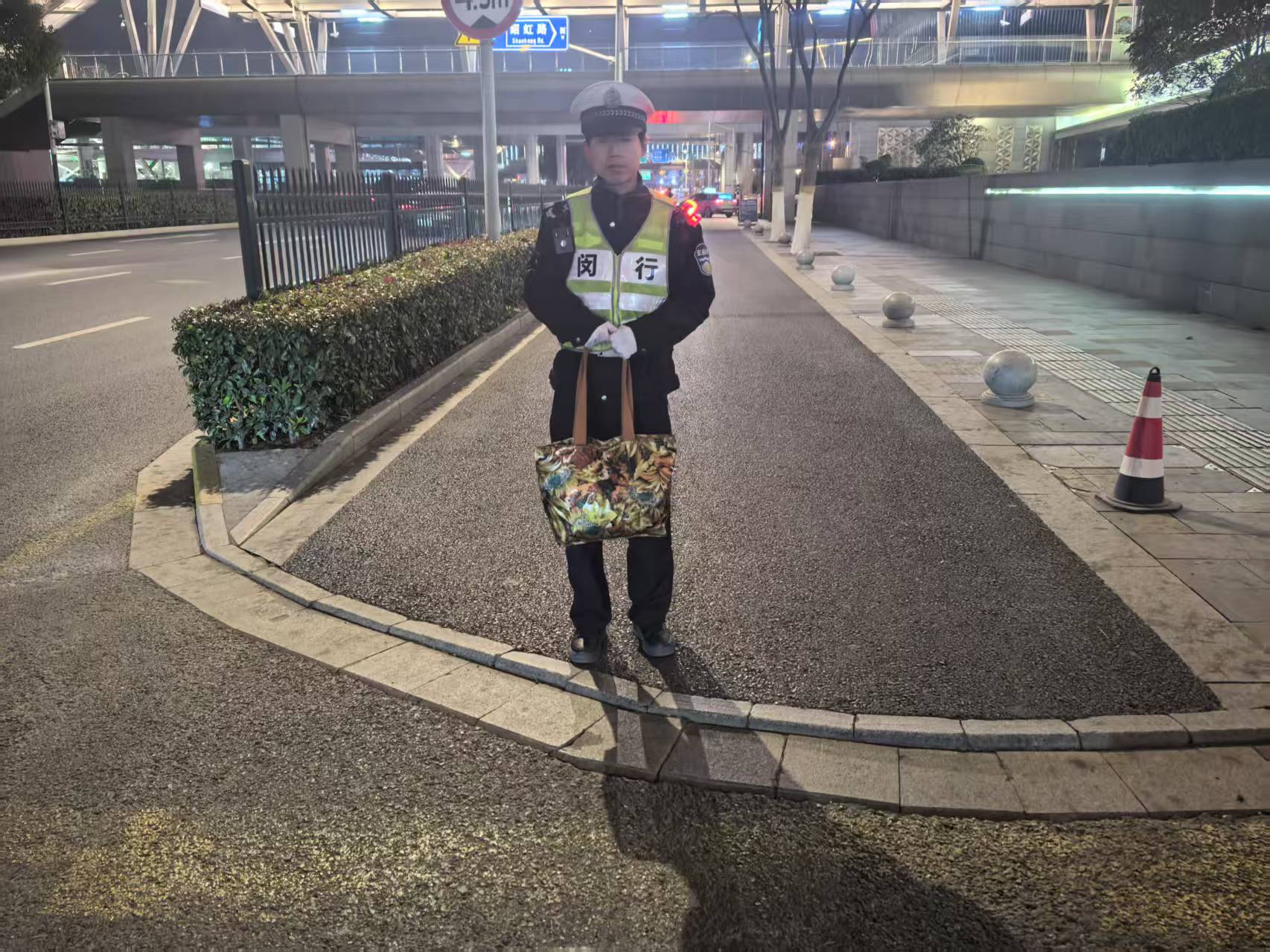 1月29日19:11,宗保公司駐閔行區(qū)交通委項(xiàng)目員工顧成昊在虹橋樞紐康德思酒店附近執(zhí)勤時(shí),撿到一個(gè)裝有3張銀行卡、1張身份證、1個(gè)錢包以及若干衣物的挎包,報(bào)告項(xiàng)目隊(duì)長(zhǎng)后便在原地等待。