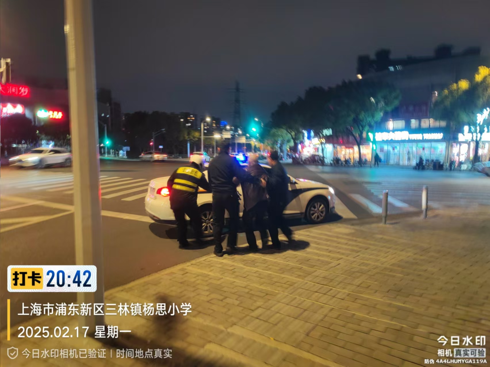 幾分鐘后,民警趕到現(xiàn)場。龐寶山和王程博協(xié)助民警核實(shí)男子身份,并配合民警將男子轉(zhuǎn)移到警車上。兩人直到民警帶男子駕車離去,才返回崗位繼續(xù)進(jìn)行巡查。