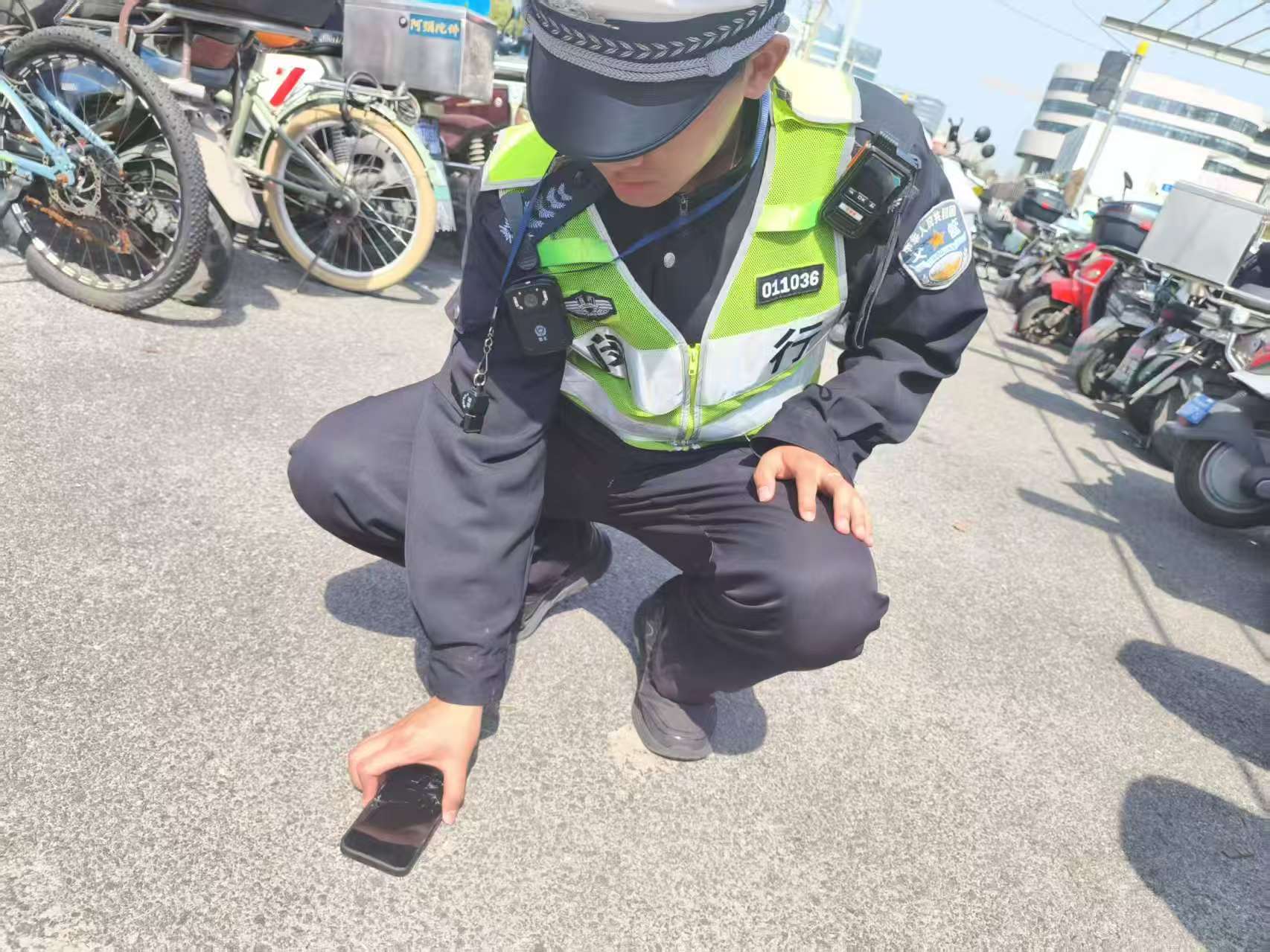 大約過了五六分鐘,一位騎著電瓶車的女子神色焦急地趕到現(xiàn)場,左顧右盼地好像尋找物品。王祥見狀主動上前詢問,女子表示自己的手機剛剛不慎丟失了。
