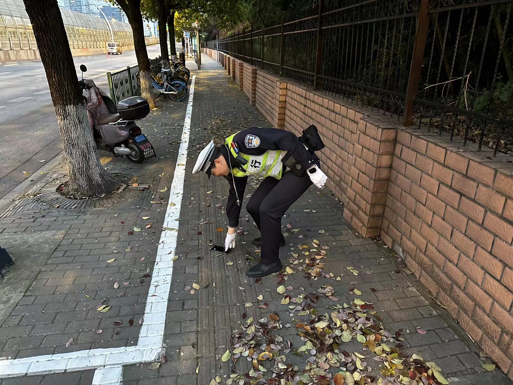 4月4日18:00,宗保公司駐閔行區(qū)虹橋交管輔助項(xiàng)目員工李洋在吳中路古北路路口執(zhí)勤時(shí),撿到一部OPPO手機(jī)。因手機(jī)設(shè)有鎖屏密碼,無(wú)法直接聯(lián)系失主,李洋便將情況報(bào)告了班組長(zhǎng),并按指示在原地等待。