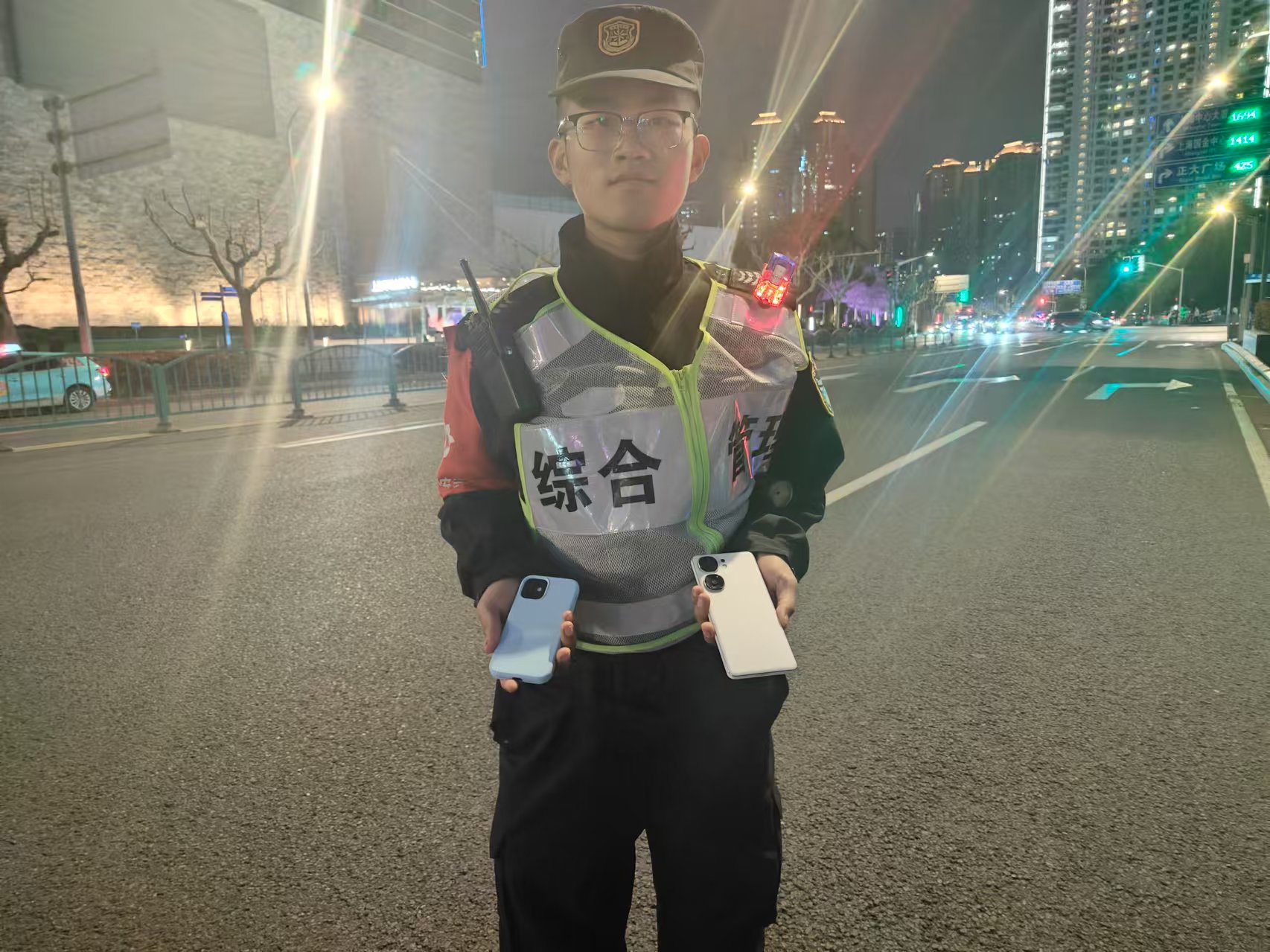 4月5日21:20,宗保公司駐浦東新區(qū)陸家嘴綜合管理項(xiàng)目員工高貴玉在東泰路金茂大廈2號(hào)門附近巡邏時(shí),撿到一部蘋果手機(jī)和一部IQOO手機(jī),報(bào)告班組長(zhǎng)后,便在原地邊值勤邊等待失主。