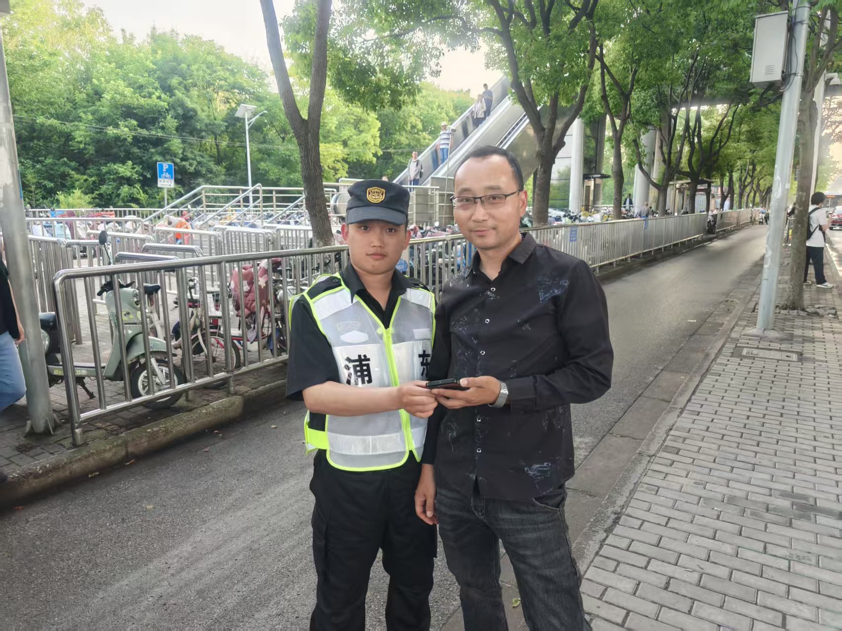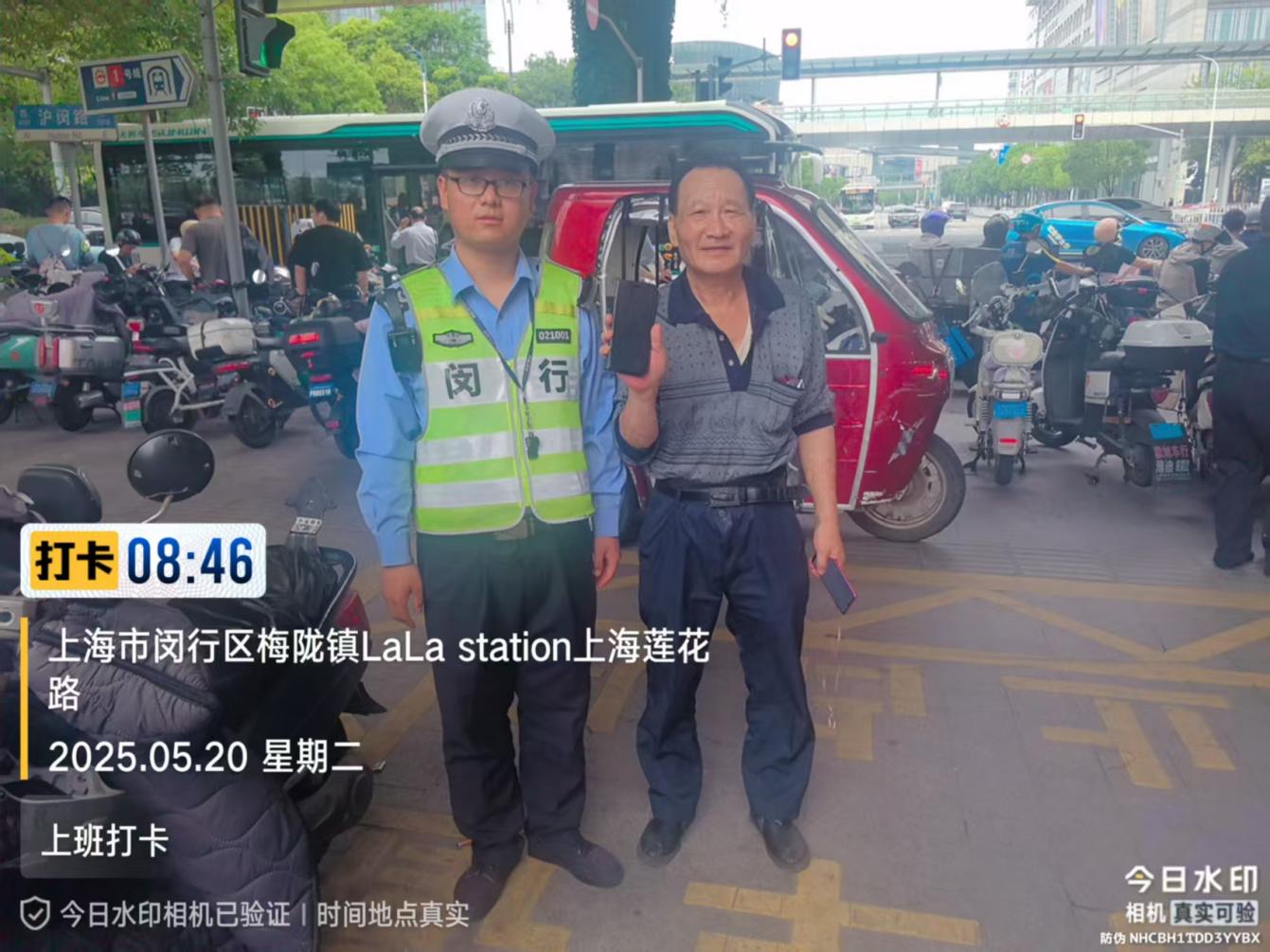 宗保公司駐閔行區(qū)虹橋交管輔助項(xiàng)目員工撿到華為手機(jī)歸還失主