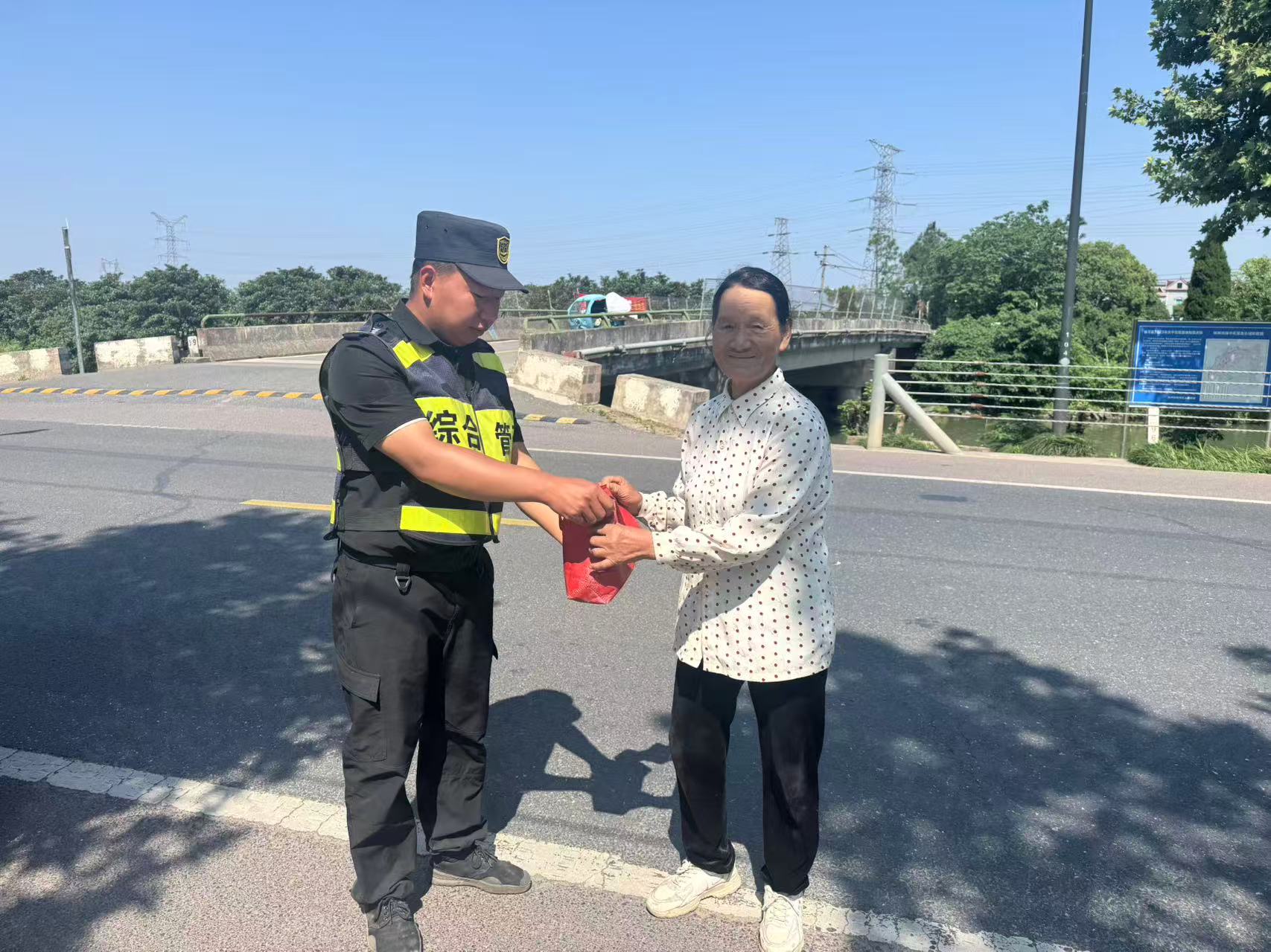 5月29日8:10,浙江民泰公司駐杭州市臨平區(qū)東湖市容項(xiàng)目員工羅海銘在超山龍超路西園碼頭執(zhí)勤時(shí),撿到一個(gè)紅色手提袋,內(nèi)有若干現(xiàn)金和一部手機(jī)。羅海銘報(bào)告班組長后,便在原地邊執(zhí)勤邊等待失主。
