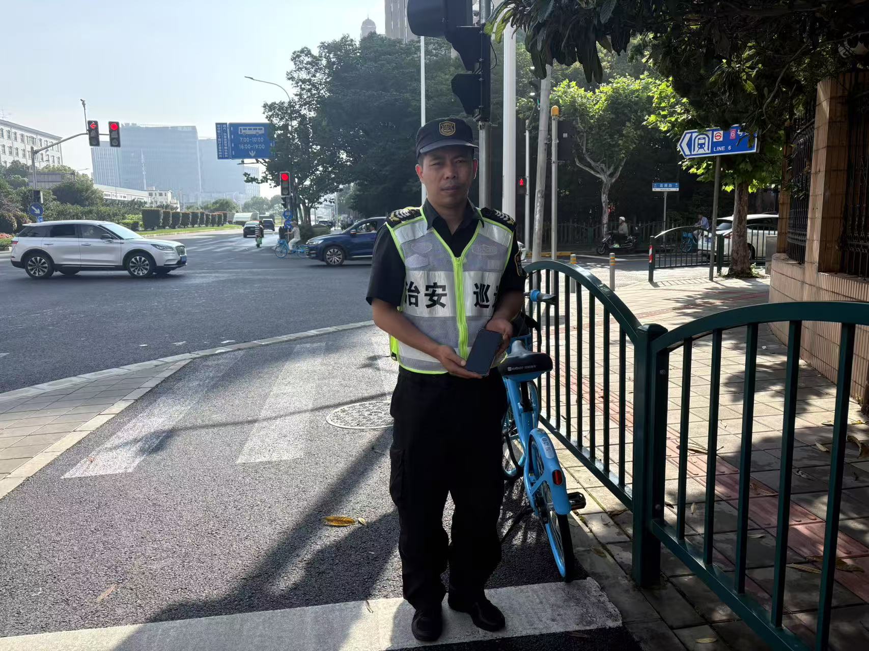 6月5日18:00 ,宗保公司駐閔行區(qū)莘莊工業(yè)區(qū)項(xiàng)目員工龍彪在鑫都實(shí)驗(yàn)中學(xué)護(hù)校時(shí),撿到一部華為手機(jī),詢問路人無人認(rèn)領(lǐng)后,便在學(xué)校門口邊執(zhí)勤邊等待失主。