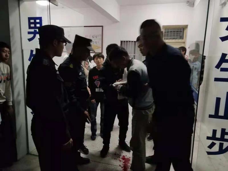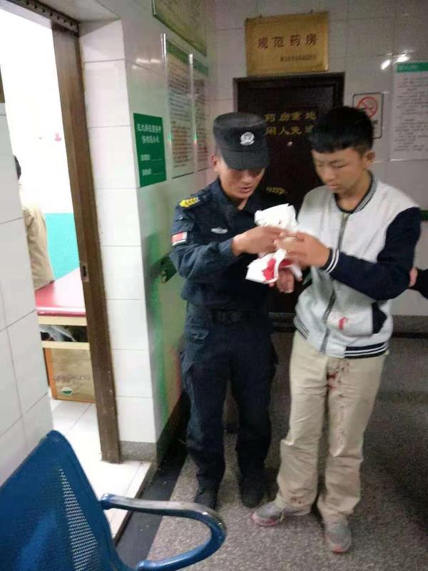 當(dāng)天18:30分,黃山二中九年級(jí)六班學(xué)生王洋在宿舍樓下玻璃門(mén)上做引體向上,不小心把手碰在玻璃上,嚴(yán)重受傷,血流滿地。因失血過(guò)多加上驚嚇,王洋嘴唇發(fā)白,身體站不穩(wěn)。 此時(shí)正在附近訓(xùn)練的宗保特保隊(duì)員得知消息后,第一時(shí)間趕到學(xué)校,把王洋送到最近的甘棠醫(yī)院治療,同時(shí)與學(xué)校老師取得聯(lián)系。因傷勢(shì)嚴(yán)重,王洋被甘棠醫(yī)院拒收,后又不得不送到龍井醫(yī)院。期間,李鵬程等宗保特保隊(duì)員一路狂奔,送醫(yī)院、轉(zhuǎn)醫(yī)院、掛號(hào)、找醫(yī)生,全程陪護(hù)學(xué)生做完一系列的檢查。經(jīng)過(guò)緊急救治,該學(xué)生已無(wú)大礙。