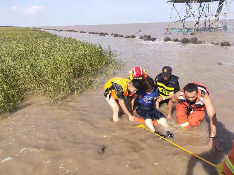 國慶假日,上海臨港,游人如織。海邊的觀海嘴公園風(fēng)景如畫,更是游樂的好去處。不少游客不顧提醒、勸阻,擅自翻躍海堤,到海灘上嬉戲。這兩名青年男女甚至到更遠的礁石上玩耍,女游客因腿部扭傷,在漲潮時無法及時撤離,兩人被海水困住了。