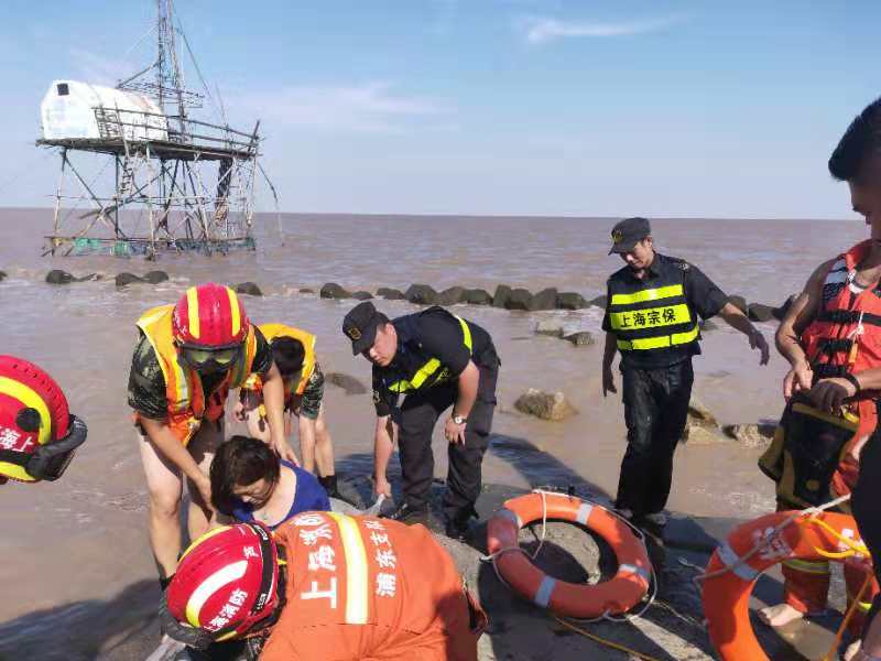 上海宗保保安服務(wù)有限公司南匯新城項目的城管輔警隊員呂永峰、周柳星、羅玉壽發(fā)現(xiàn)這一險情后,一邊向值班人員匯報,一邊報警請求救援。待消防隊員趕到現(xiàn)場后,積極參與救援。最終,在多方努力下,受困的游客成功獲救。