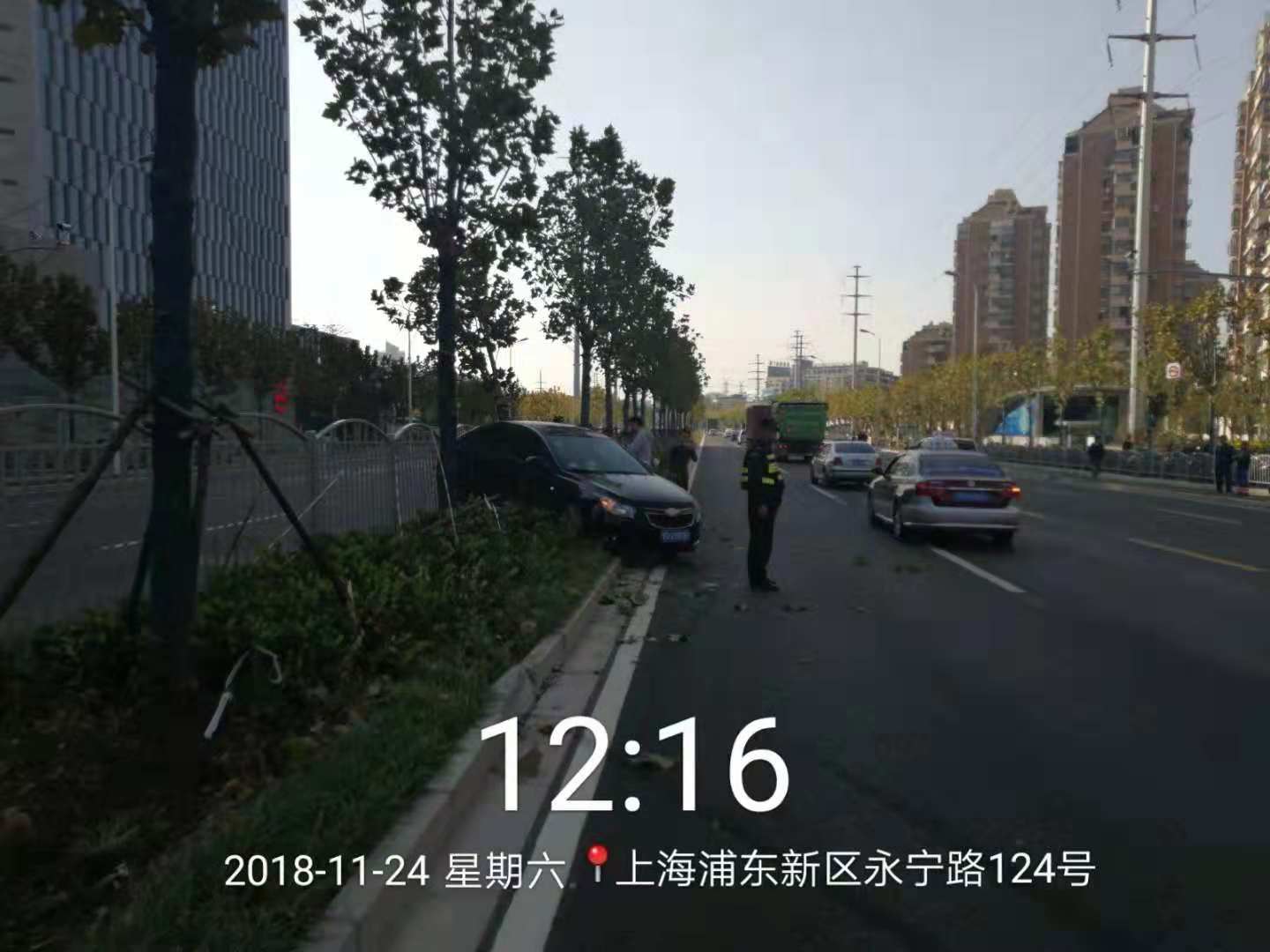 12:00左右,當(dāng)宗保駐金橋輔警項(xiàng)目巡邏隊(duì)員,巡邏經(jīng)過(guò)金橋地鐵站附近時(shí),發(fā)現(xiàn)路上發(fā)生了一起車禍,因一輛大卡車強(qiáng)行變道,撞上小轎車車尾,導(dǎo)致小轎車撞向綠化帶,所幸事故中無(wú)人傷亡。隊(duì)員許偉立即向帶班組長(zhǎng)匯報(bào)情況,并和隊(duì)友及金橋城管巡邏隊(duì)員一起參與到交通事故救助中,一起保護(hù)現(xiàn)場(chǎng),維持交通秩序,等待交警來(lái)處理。