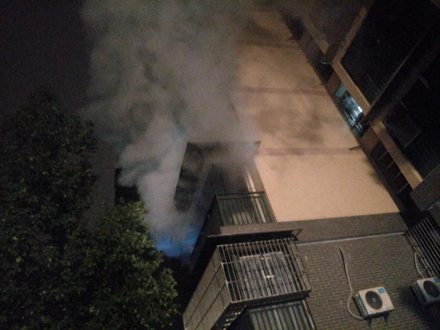 幾名隊(duì)員 沖過去一看,現(xiàn)場火勢較大,濃煙滾滾。隊(duì)員們立即上報(bào)值班室,并拉起警戒線。2名隊(duì)員上樓開窗通風(fēng),挨家挨戶敲門通知住戶,并幫忙攙扶老人小孩先撤離。