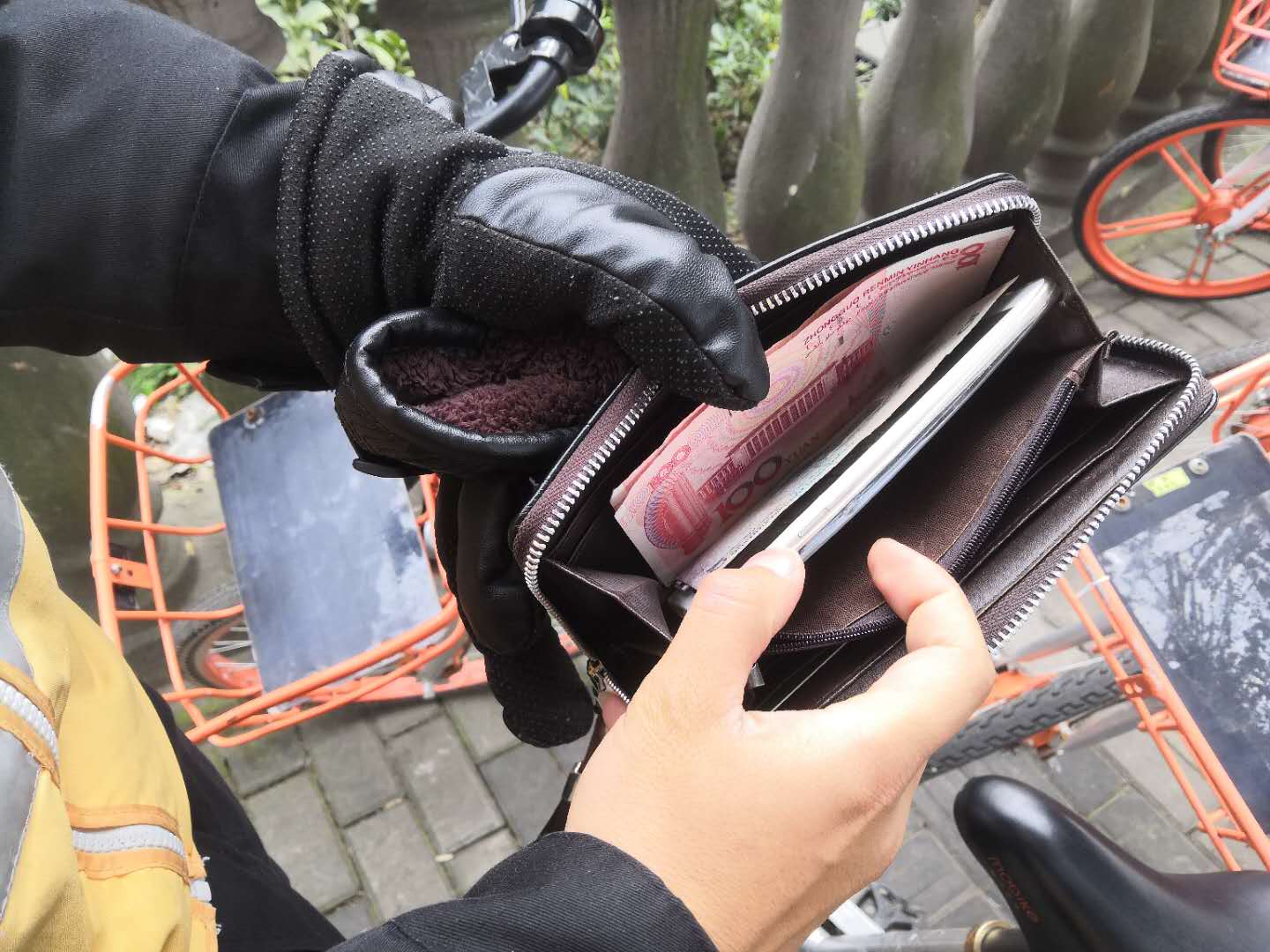 2019年1月2日09:30,宗保駐金橋市容隊(duì)員何金標(biāo)、羅友恒在新金橋路1745號(hào)執(zhí)勤擺放共享單車過程中,發(fā)現(xiàn)有一輛共享單車前面車斗內(nèi)有一個(gè)錢包,當(dāng)事人不在現(xiàn)場(chǎng)。兩位隊(duì)員立即上報(bào)區(qū)域負(fù)責(zé)人。在上報(bào)過程中,失主來到了現(xiàn)場(chǎng),根據(jù)錢包中的身份證和手機(jī)號(hào)碼的核對(duì),確認(rèn)錢包是當(dāng)事人后,將錢包歸還給失主。